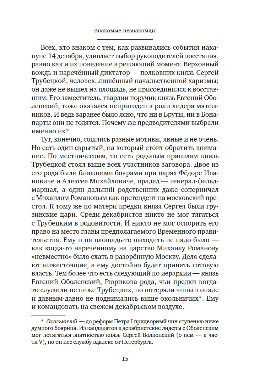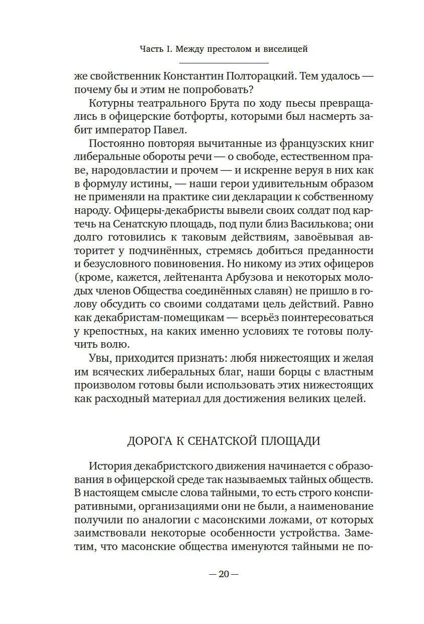 14 декабря 1825 года – мятеж на Сенатской площади – одна из ярчайших страниц русской истории. Однако до сих пор, спустя 200 лет, не утихают споры о причинах, плане, ходе и итогах восстания. Было ли это масштабным выступлением дворян-единомышленников, стремившихся осуществить государственный переворот, – или всего лишь "происшествием", как называли восстание в официальных источниках? Приблизиться к пониманию феномена движения декабристов, не прибегая к готовым идеологическим трактовкам, помогает изучение биографий его участников.
