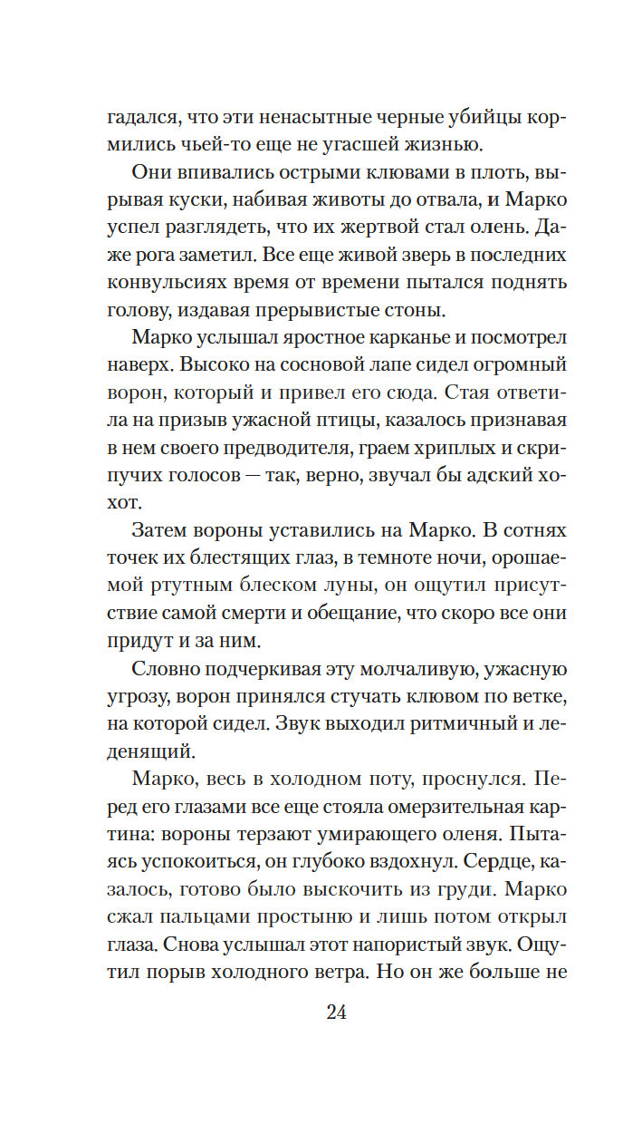 Январь 1995 года. Регион Венето. В забытом богом поселке среди неприступных венецианских Альп обнаружен изуродованный труп местной учительницы с вырванными глазами. Полиция ближайшего городка поручает инспектору Зои Тормен – дочери автогонщика, альпинистке и любительнице стиля гранж – в компании с судмедэкспертом, чопорным и элегантным Альвизе Стеллой, отправиться на место происшествия: тут, похоже, орудует маньяк-убийца. Но действительность оказывается гораздо хуже – вскоре появляется вторая жертва, потом третья… И все тела изодраны клювами воронов, темной тучей кружащих над поселком…