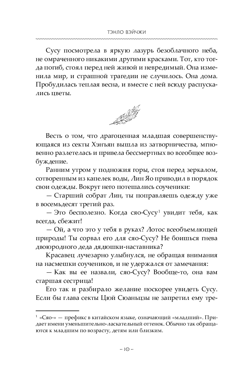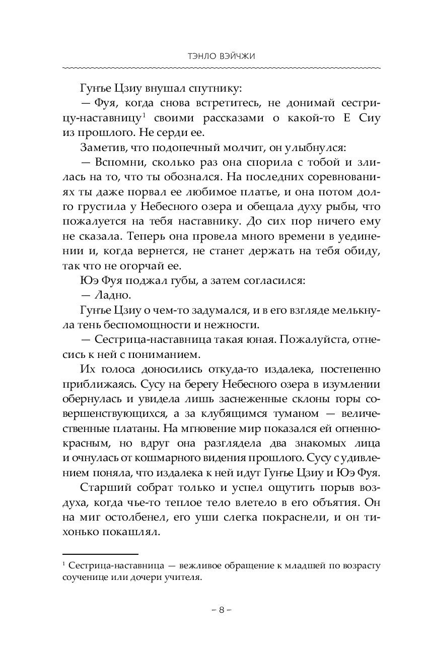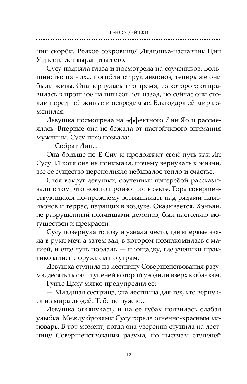 Однако прошлое, прожитое в теле Е Сиу, не отпускает Сусу. За пятьсот лет ее нежеланный муж, Таньтай Цзинь, исходил все миры, лишь бы отыскать Е Сиу и вернуть к жизни… Волей судьбы повелитель демонов становится учеником одной из светлых сект, что участвуют в турнире.