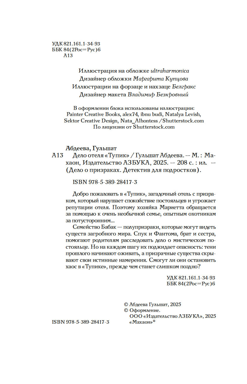 Семейство Бабак – полупризраки, которые могут видеть существ загробного мира. Спук и Фантома, брат и сестра, помогают родителям расследовать дело о мистическом постояльце. Но на каждом шагу их поджидает опасность: тени прошлого начинают оживать, а призрачные существа скрывают свои истинные намерения. Смогут ли они остановить хаос в "Тупике", прежде чем станет слишком поздно?
