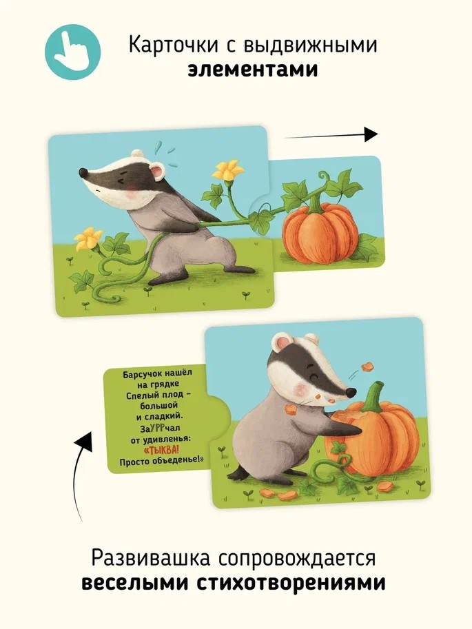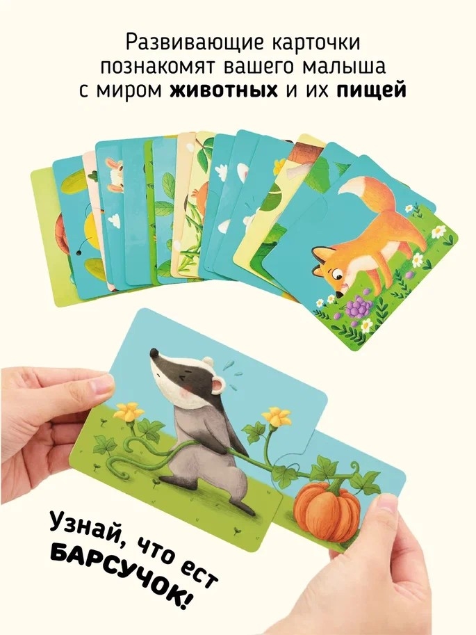 Развивающие карточки животные с выдвижными элементами "Тяни и корми"