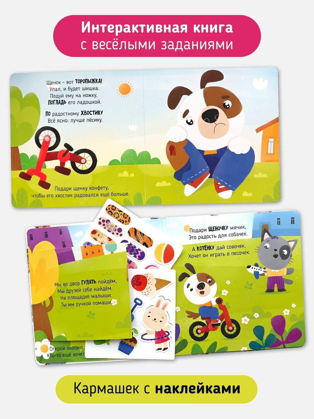 Книжка "Так намного лучше" – это интерактивная детская книга-игрушка, созданная специально для самых маленьких. Она предлагает детям помочь зверятам (зайчику, котенку, щенку, мишке) и мальчику справиться с неприятными историями, в которые они попали с помощью волшебных многоразовых пластырей. На каждом листе веселые задания, что не только развлекает, но и развивает мелкую моторику и координацию движений, прививая любовь к чтению.
