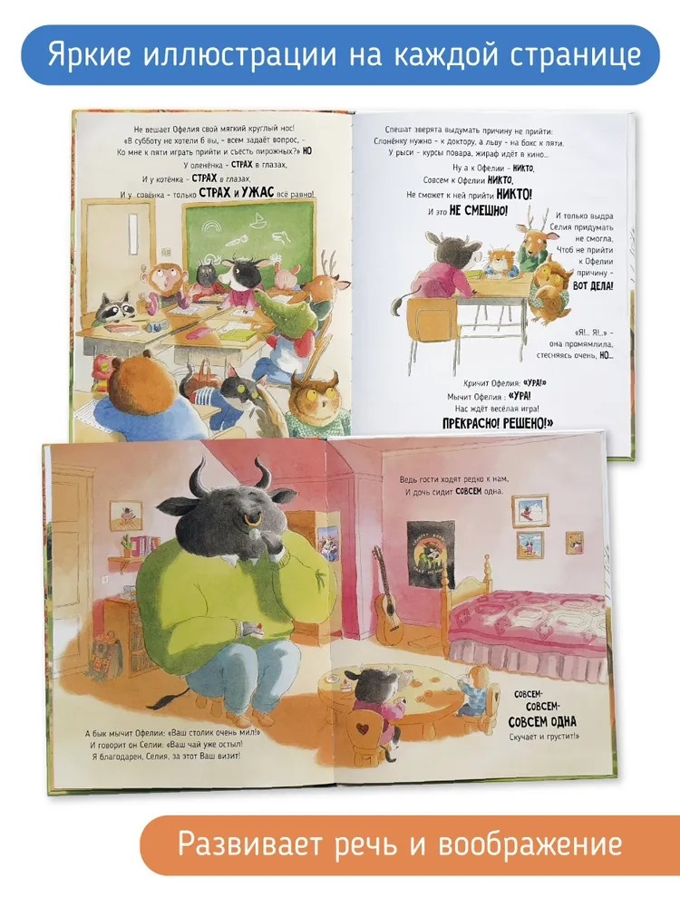 Каждое утро Офелию приводит в школу её папа – самый большой и сильный бык на свете! Он так чудовищно велик, что одноклассники Офелии боятся ходить к ней в гости! Но... Что будет, если не обращать внимания на внешность? Эта захватывающая история в стихах предназначена для детей от 3 лет и идеально подходит для совместного чтения перед сном.