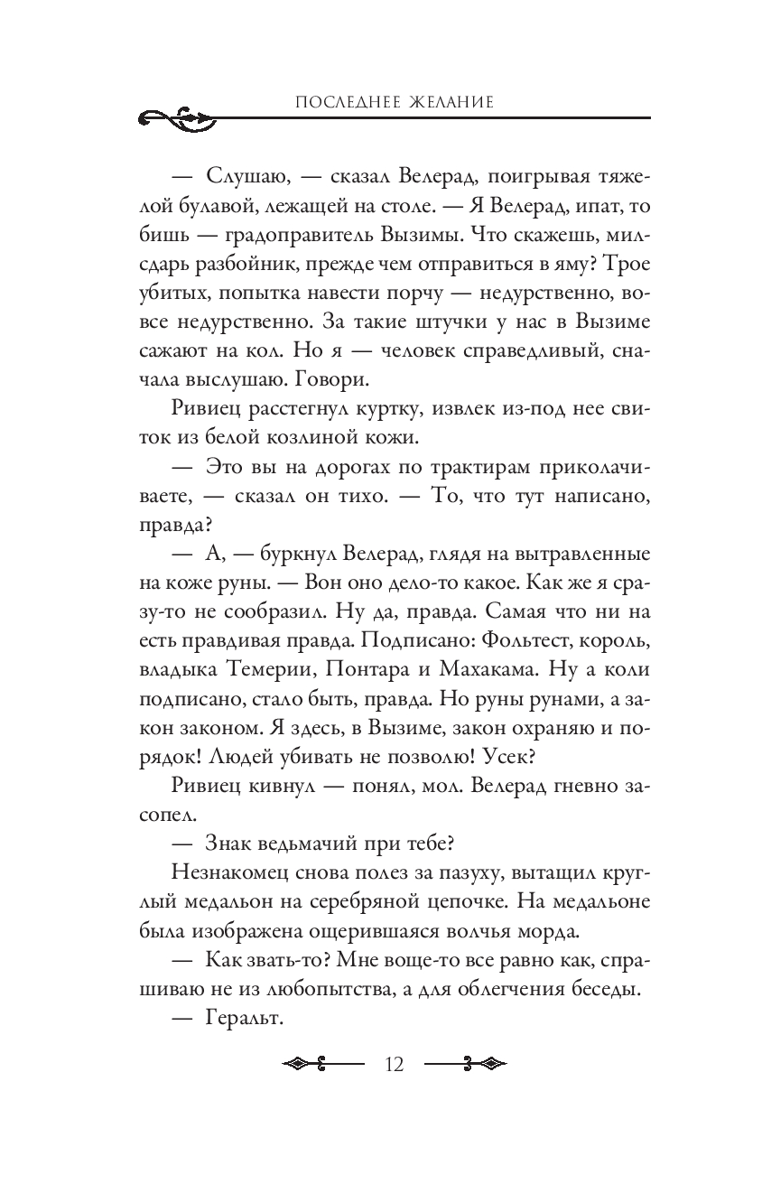 И вновь, и вновь Геральт, ведьмак из Каэр Морхена, выезжает на большак. Его ждут увлекательные приключения, неожиданные встречи и смертельные схватки.