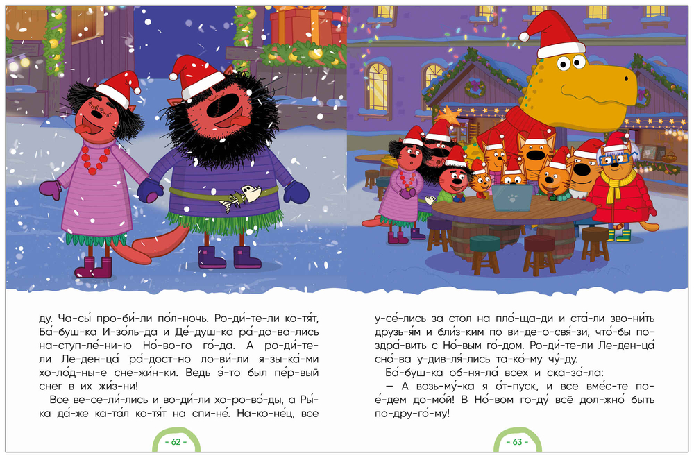 В книге ребенка ждет история из полнометражного мультфильма "Три кота. Зимние каникулы". Как привить ребенку любовь к чтению? На помощь придут любимые герои – Коржик, Карамелька и Компот! В этой книжке они вместе с родителями и Дедушкой отправились в гости к Бабушке Изольде в далекую Северландию. Их ждут настоящие приключения в ледяной пещере и даже знакомство с древними котами по мотивам полнометражного мультфильма. Малышу будет удобно и легко читать историю самостоятельно – все слова напечатаны крупным шрифтом, слова поделены на слоги и в них проставлены ударения. Эта книга точно станет любимой на книжной полке малыша.