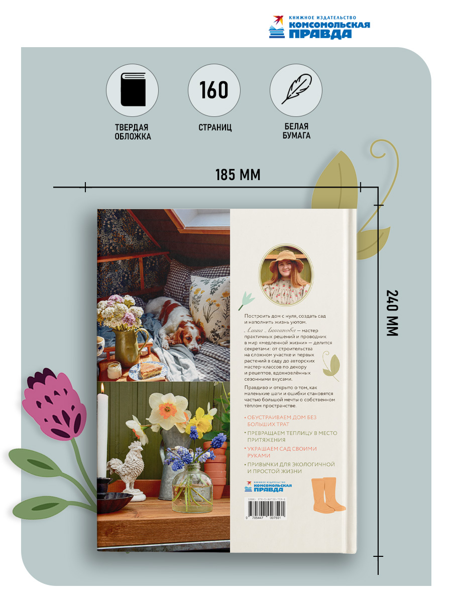 Алина Антипова, мастер практичных решений и проводник в мир "медленной жизни", делится личным опытом – о плюсах и минусах загородного быта, находках и ошибках, о том, как создать уют в ограниченном пространстве. На страницах книги – основы садоводства, растения для "ленивого сада" и готовые схемы миксбордеров. Все о теплице, включая чертежи, и о садовом декоре своими руками: кашпо, табличках, стильной бочке, опоре для роз и фанерных гусях.