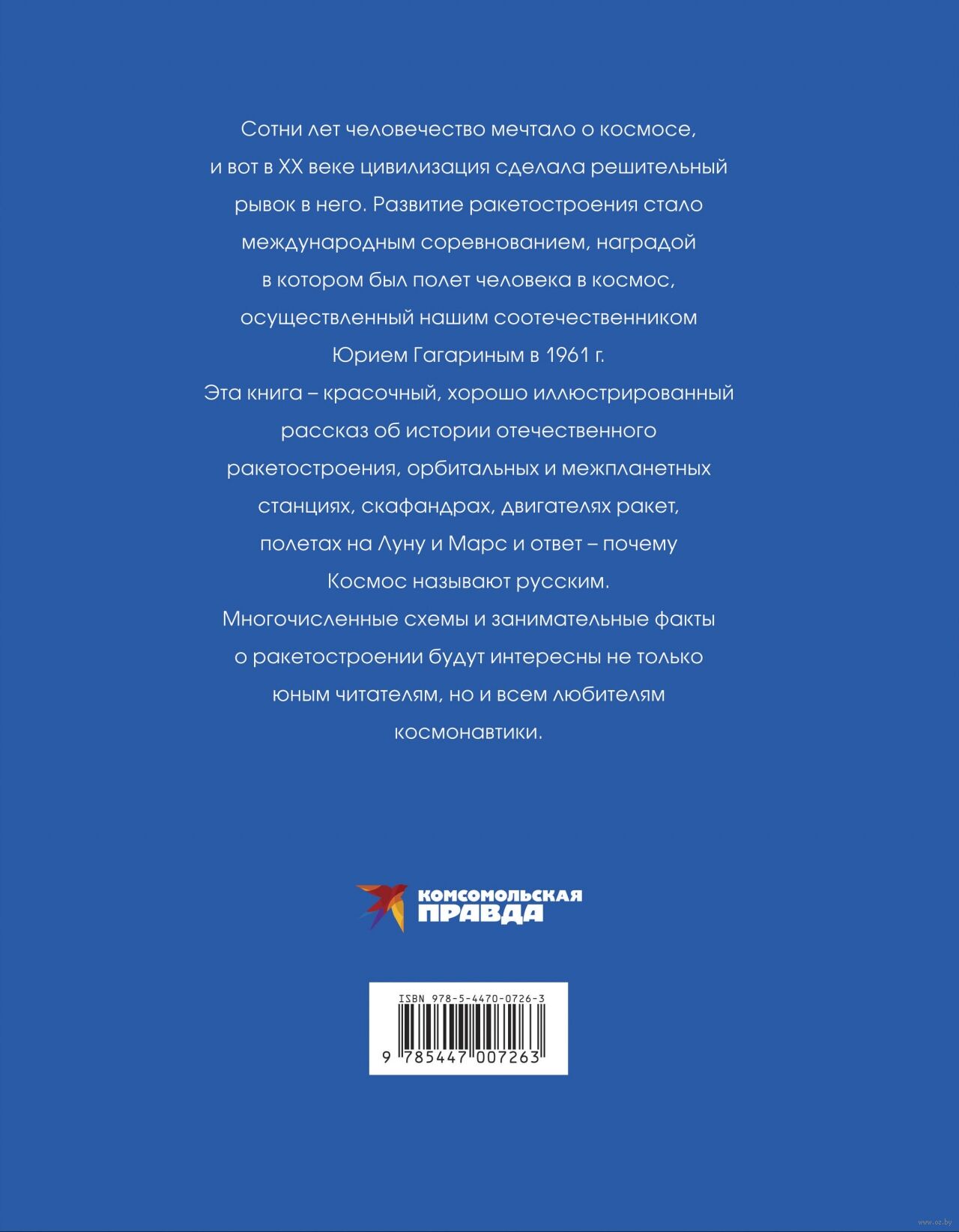 Эта книга – красочный, хорошо иллюстрированный рассказ об истории отечественного ракетостроения, орбитальных и межпланетных станциях, скафандрах, двигателях ракет, полетах на Луну и Марс и ответ – почему Космос называют русским. Многочисленные схемы и занимательные факты о ракетостроении будут интересны не только юным читателям, но и всем любителям космонавтики.