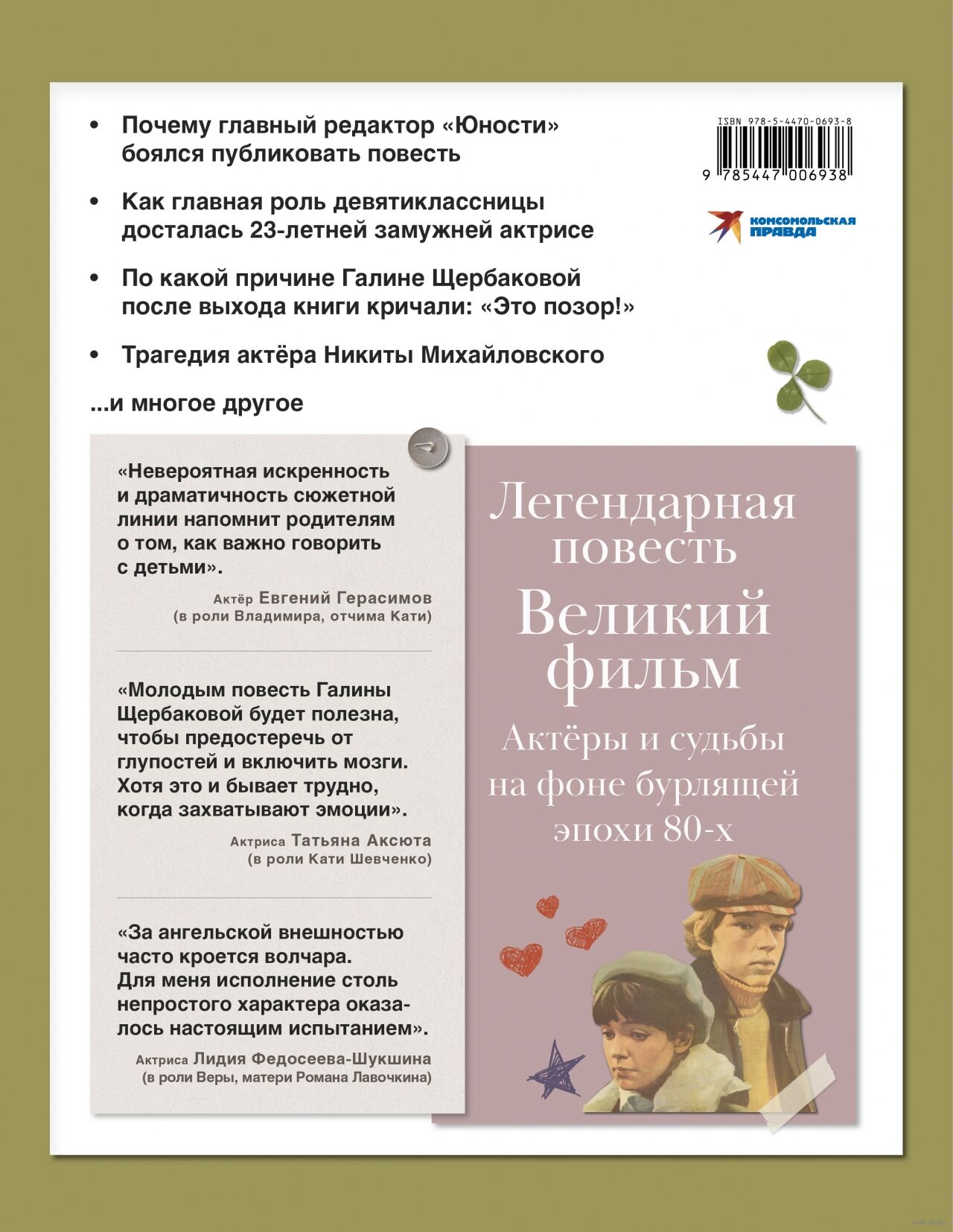 В этой книге – и сама повесть, и рассказ об эпохе, когда она была издана. Погружение в ранние 80-е, удивительные и незабываемые, сложные, переломные, прекрасные, когда билет в кино стоил 50 копеек, а за хорошими книгами выстраивались очереди. И, главное, о тех, кто участвовал в создании фильма: о сценаристке, режиссере и об актерах, от которых уже 45 лет невозможно отвести глаз, – откровенные истории, невероятные повороты личных сюжетов.