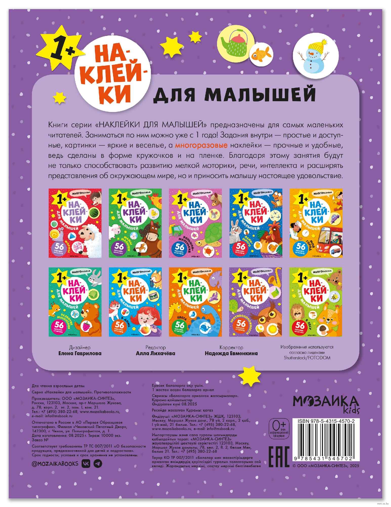 Книга из серии "Наклейки для малышей" – настоящая находка для родителей малышей от 1 года! Прочные многоразовые наклейки-кружочки легко клеятся. Простые задания направлены на развитие логического и пространственного мышления, яркие картинки привлекают внимание. Учитесь с радостью!
