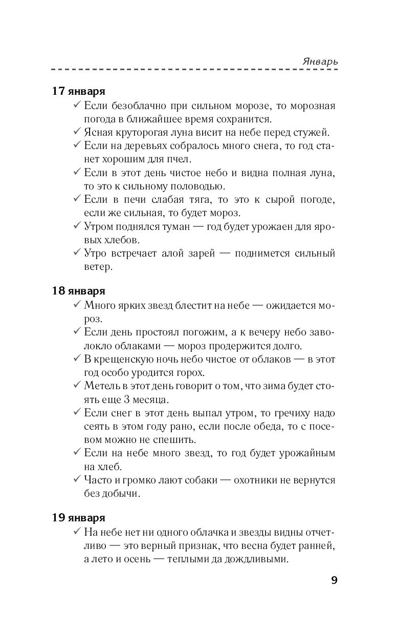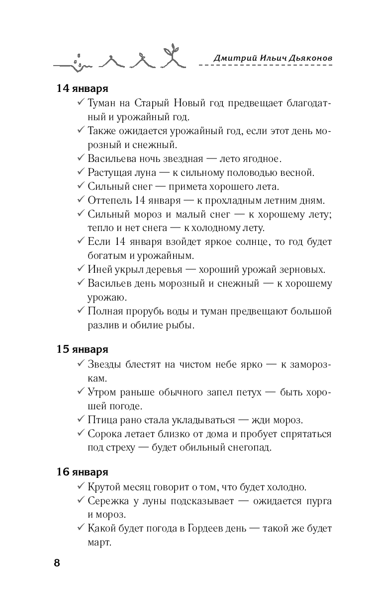 Эта книга – не просто сборник старинных поверий, а практическое руководство, проверенное поколениями: какие приметы действительно работают, как по январским сосулькам предсказать урожай, а по поведению муравьев – наступление дождя. Здесь вы найдете приметы на каждый день года, сгруппированные по месяцам и сопровождаемые пояснениями, когда и на что стоит обратить внимание.