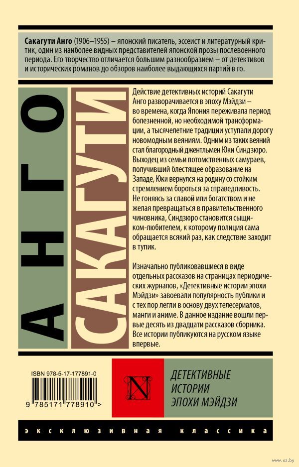 Изначально публиковавшиеся в виде отдельных рассказов на страницах периодических журналов, "Детективные истории эпохи Мэйдзи" завоевали популярность публики и с тех пор легли в основу двух телесериалов, манги и аниме. В данное издание вошли первые десять из двадцати рассказов сборника. Все истории публикуются на русском языке впервые.