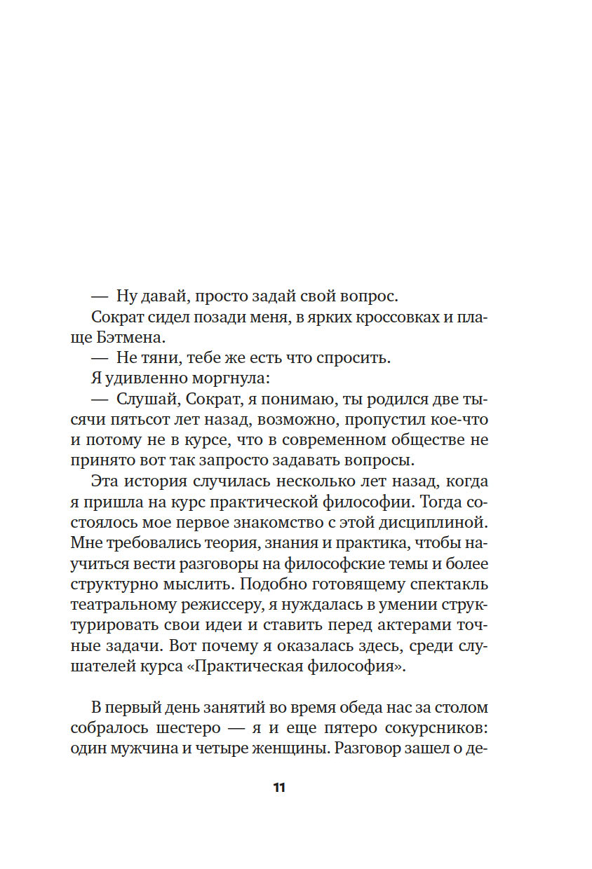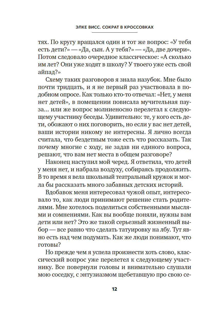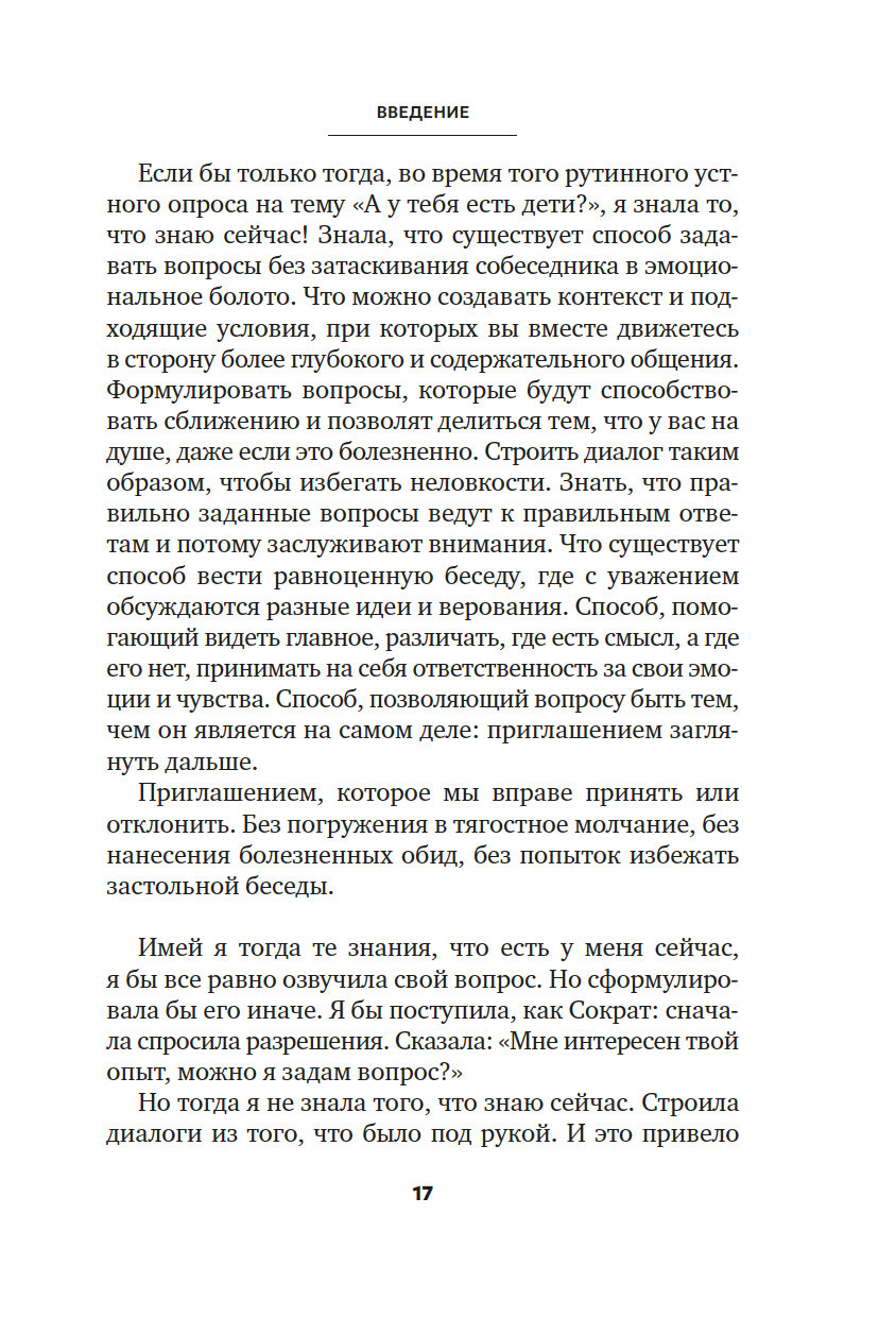В современном мире искусство вести беседу (будь то разговор с близким человеком или деловые переговоры) играет важную роль. Один из ведущих психологов в Европе Элке Висс предлагает несколько простых и увлекательных методов для улучшения коммуникативных навыков, обращаясь за помощью к блестящему специалисту по диалогам – древнегреческому философу Сократу. Оказывается, его методы ничуть не устарели и по-прежнему могут подарить преданным ученикам счастье и свободу смотреть на мир изумленным, заинтересованным взглядом.