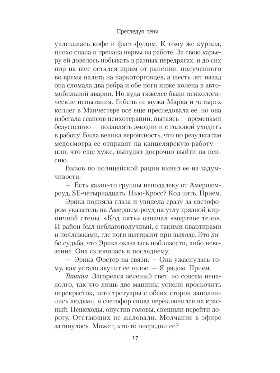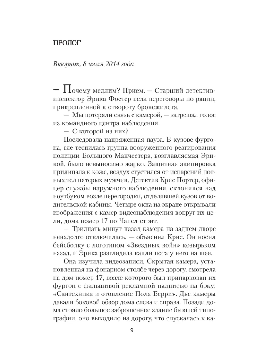 Рутинный вызов на место обрушения потолка оборачивается для главного инспектора Эрики Фостер загадочным убийством. В пустой квартире – тело, все улики уничтожены, а на обломках повсюду следы кокаина. Цепочка следов ведет Эрику к человеку из самого страшного кошмара – к Джерому Гудману, убийце ее мужа.