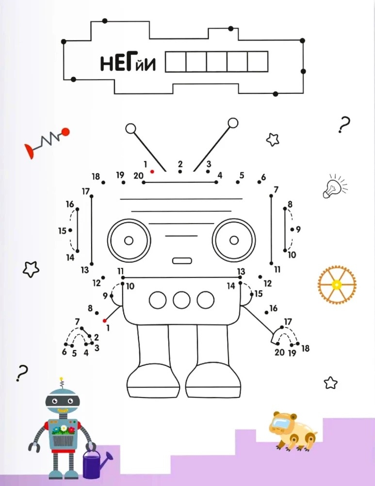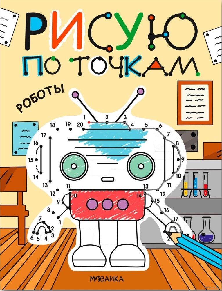 Книга "Роботы" серии "Рисую по точкам" поможет ребенку в игровой форме выучить последовательность чисел от одного до двадцати. Соединяя числа по порядку, он разовьет внимание и память. Раскрашивая рисунки, подготовит руку к письму.