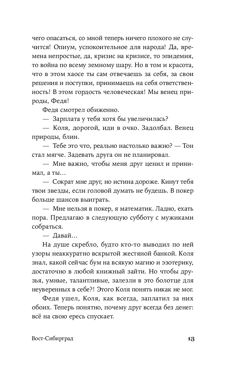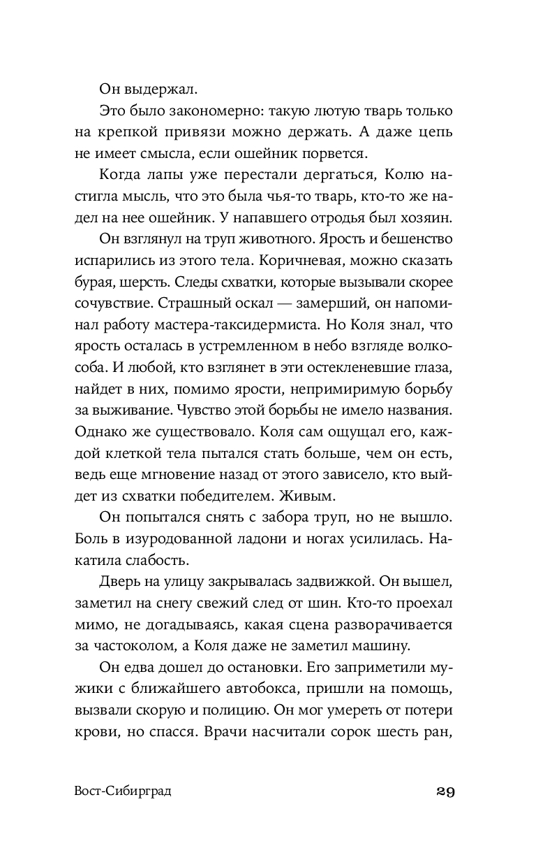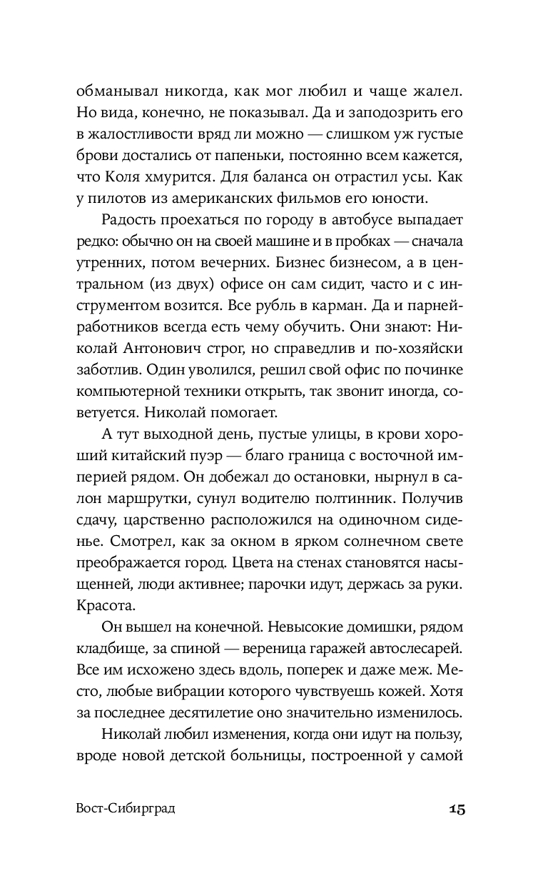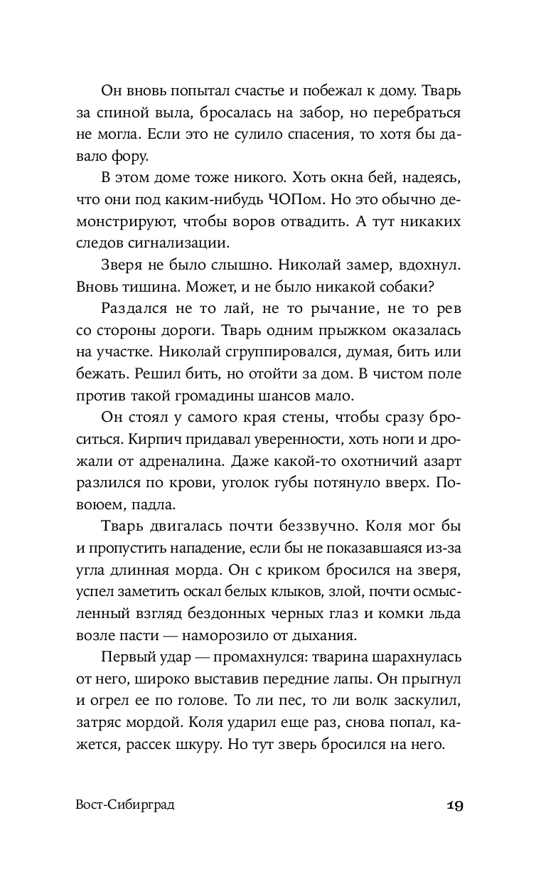 "Вост-Сибирград" – сборник малой прозы и исследование русского характера в таежных ландшафтах, приглашение к размышлению о том, что делает нас людьми и как мы отвечаем на вызовы жизни. Это сибирский текст нового формата, но наследующий классической традиции: суровая природа, отчаянные, но не отчаявшиеся люди, полифония эмоций.
