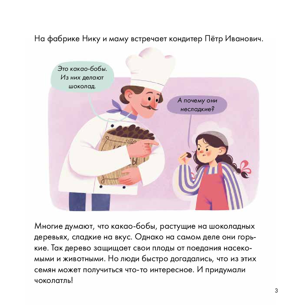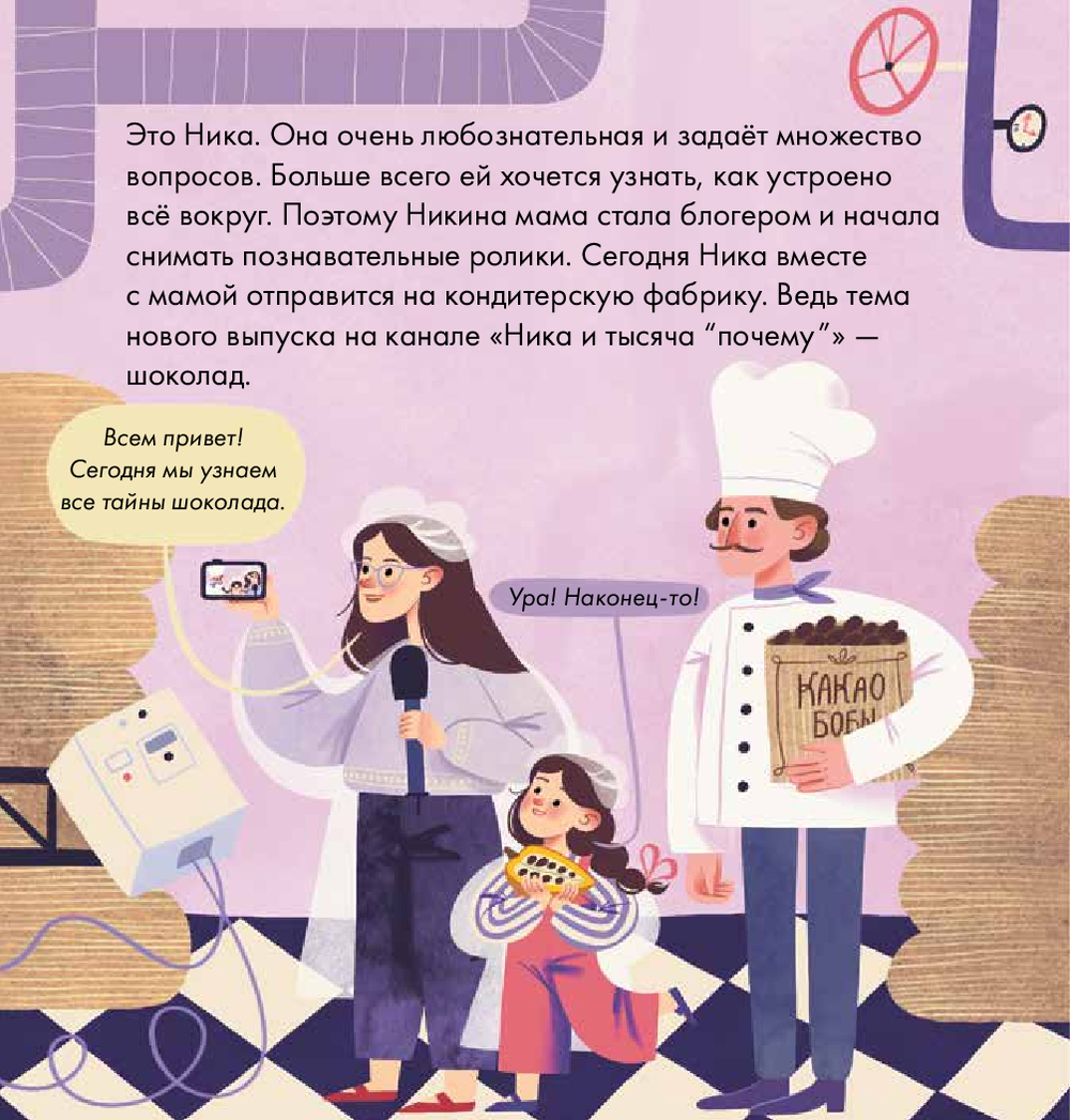 Ника и её мама-блогер отправляются на кондитерскую фабрику, чтобы узнать все тайны шоколада. Кто изобрёл шоколад? В чём польза этого продукта? Сладкие ли какао-бобы на вкус? Чем различаются горький, молочный и белый шоколад? И самое главное – сколько шоколадок можно съесть без вреда для здоровья? Ответы на эти вопросы Ника получит от настоящего кондитера, а также поделится с вами простыми рецептами шоколадных десертов.