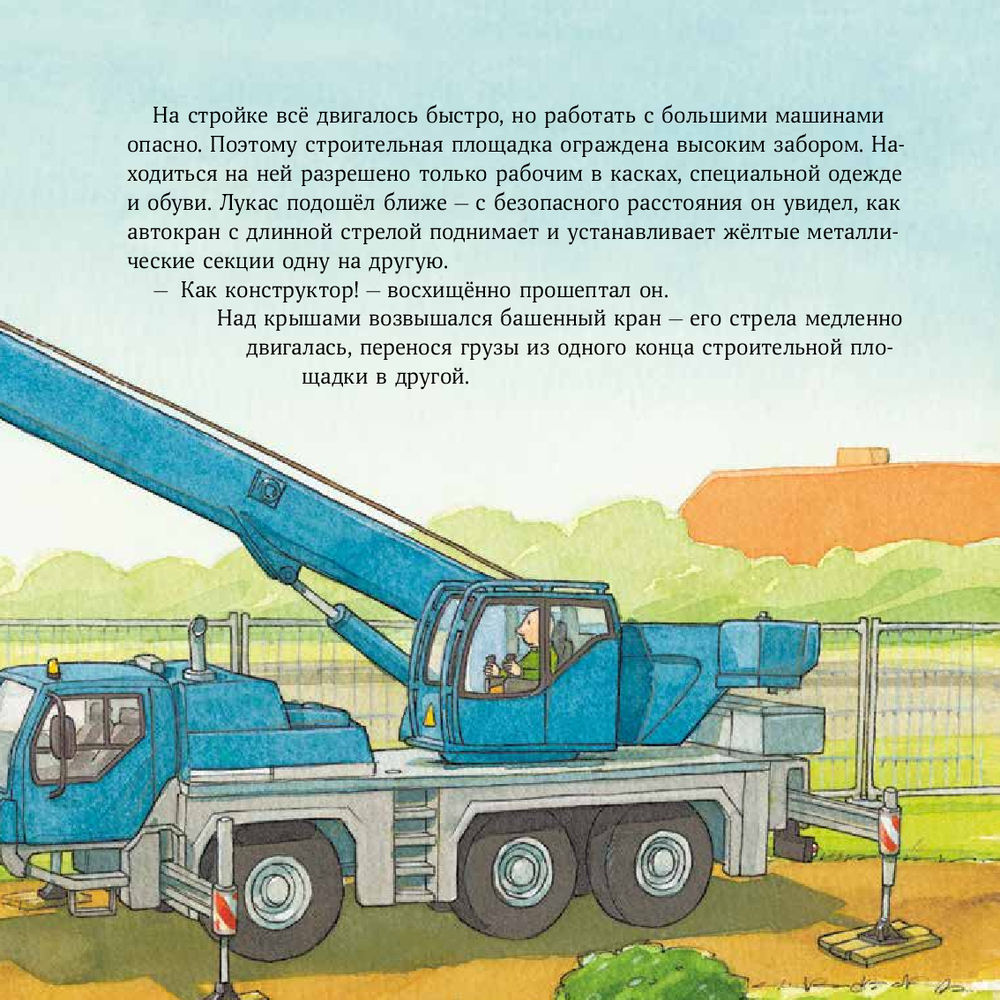 Представьте мир, где из ничего вырастают гигантские здания, а на месте пустырей появляются целые кварталы. Вместе с Лукасом читатель отправится за кулисы строительной площадки – места, где каждая деталь и каждый человек играют свою роль. Мы узнаем, как экскаватор-разрушитель сносит старые здания, как бетононасос заливает фундамент и что позволяет дорожному катку делать покрытие идеально ровным. Эта история поможет увидеть в строителях настоящих созидателей и воспитать уважение к профессии людей, которые строят наш мир.