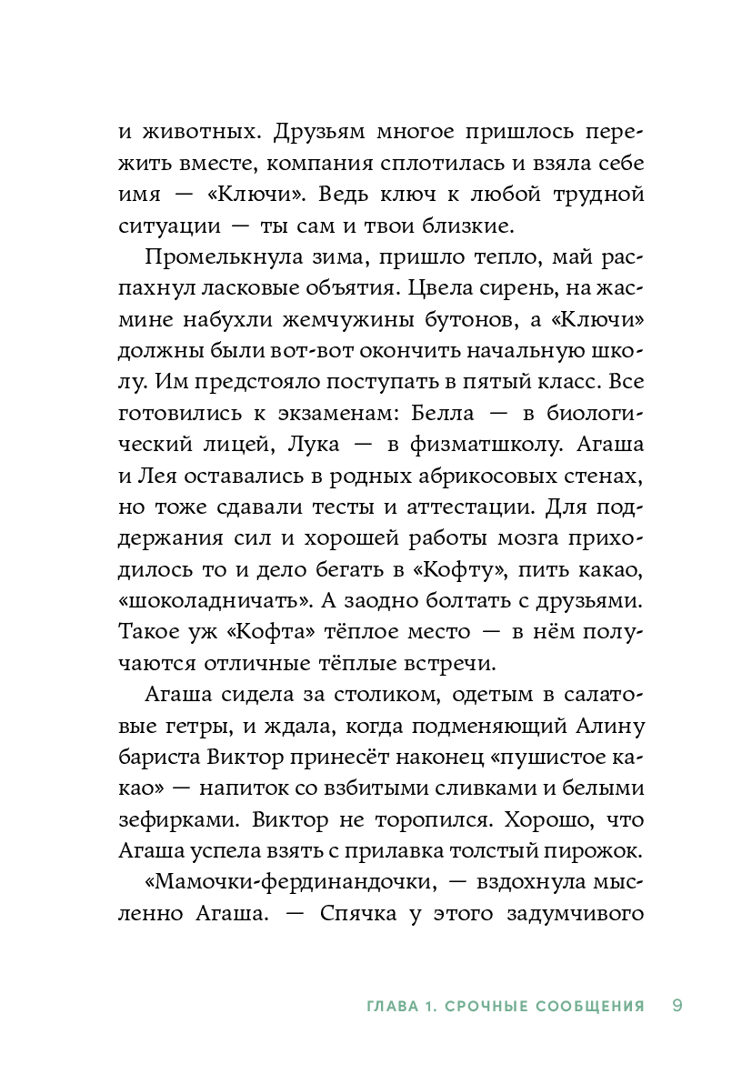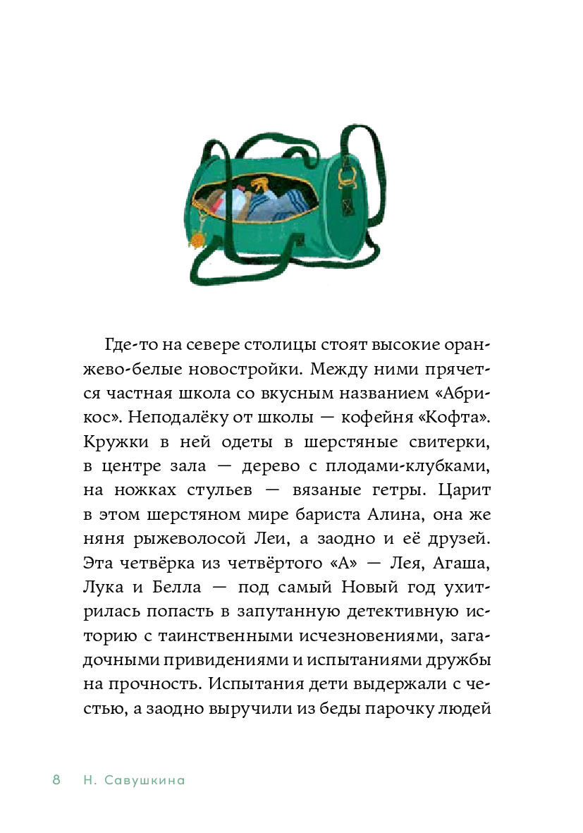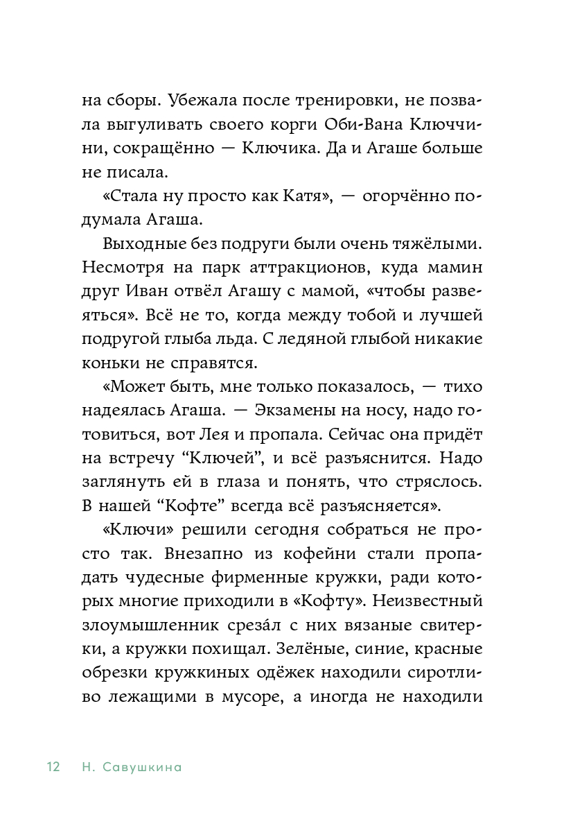 Лея, Агаша и Лука – школьники с севера Москвы и по совместительству команда "Ключи", однажды уже раскрывшая серьёзное дело (об этом читайте в книге Н. Савушкиной "Три ключа из четвёртого "А""). В этом году загадки снова находят их: в кафе "Кофта" пропадают кружки, а у Агаши перед выступлением – её любимые коньки. Смогут ли "Ключи" справиться с новой тайной, спасти бариста от увольнения и при этом не потерять дружбу?