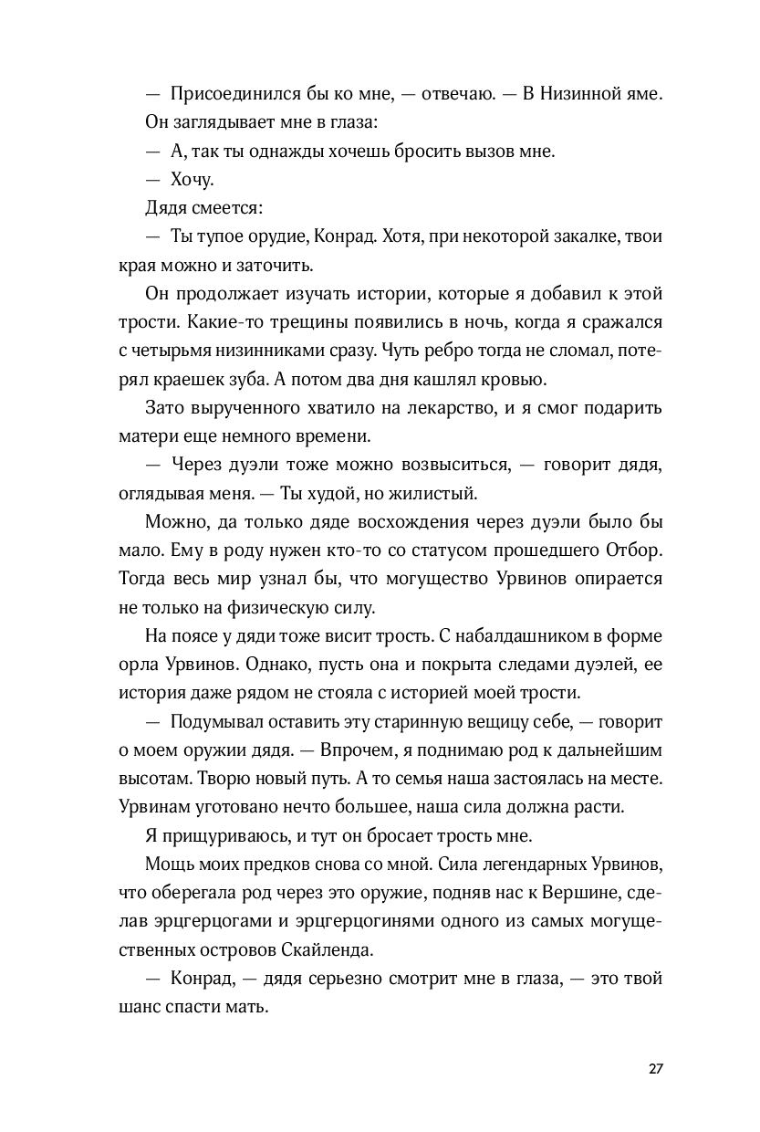 Шестнадцатилетний Конрад мечтает отомстить дяде, захватившему родовое поместье на вершине острова. Но, изгнанный в Низину, Конрад вынужден заключить с дядей сделку ради своей сестры, которую тот оставил себе на воспитание.