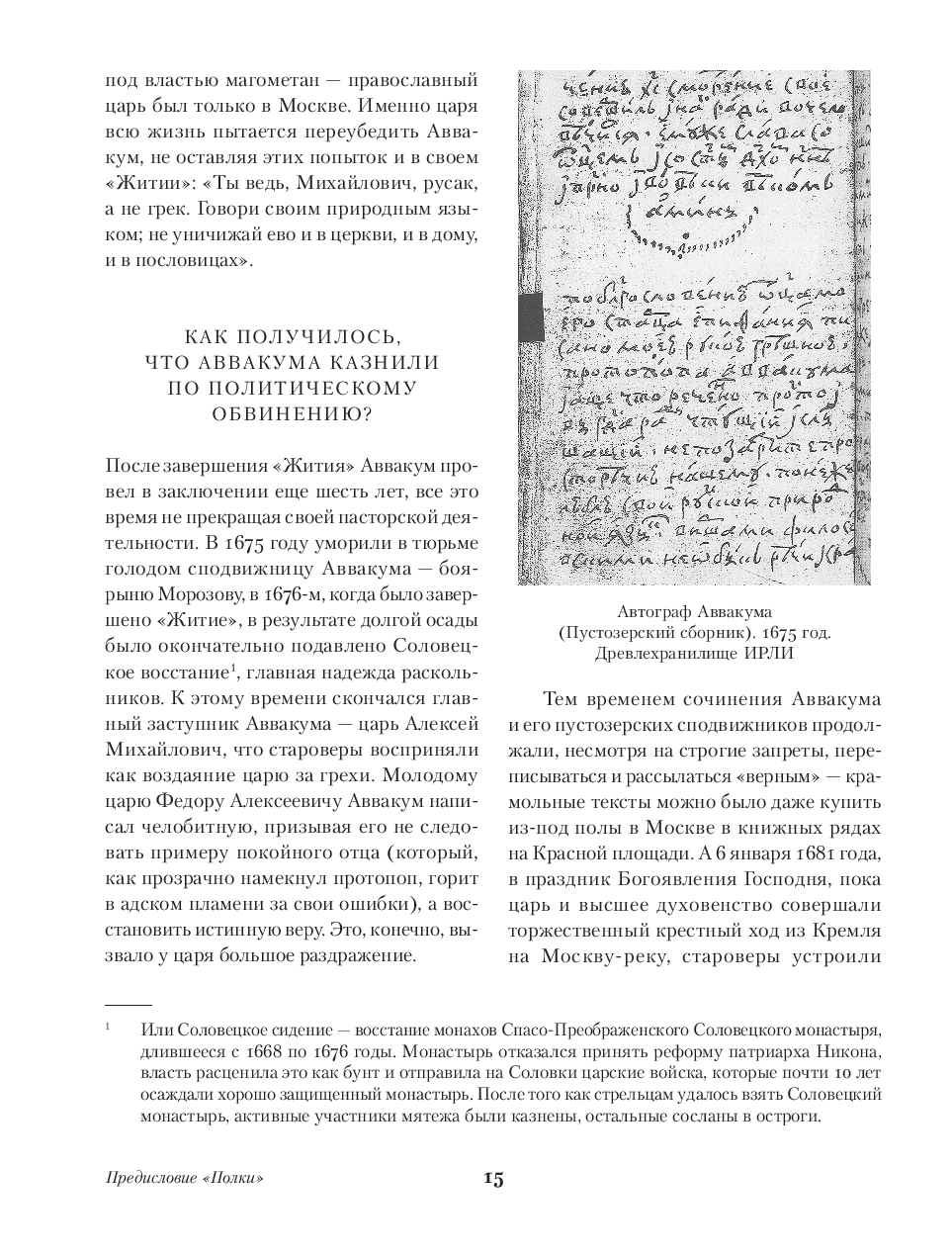 Первая русская автобиография и уникальный памятник русской литературы XVII века. Духовный предводитель церковного раскола пишет проповедь верным, отповедь никонианам и историю гонений за веру – и создает шедевр русской психологической прозы, живой и страстной.