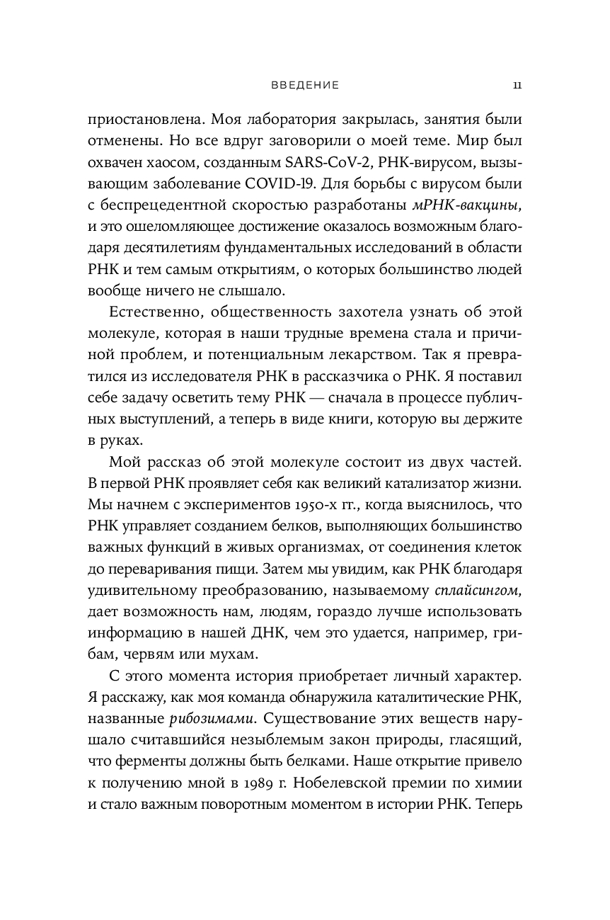 Долгое время считалось, что РНК – это курьер или посредник, ответственный за перенос информации от ДНК к белкам. Но последние научные данные показали, что РНК играет ключевую роль в жизни клетки и процессе эволюции, регуляции генов, борьбе с болезнями и создании новых медицинских технологий. Исследования РНК могут многое прояснить в вопросе возникновения жизни на Земле и позволят улучшить и даже продлить человеческое существование за пределы нынешних природных ограничений. Обо всем этом рассказывает ведущий в мире специалист в этой области, автор и свидетель революционных открытий, связанных с РНК.