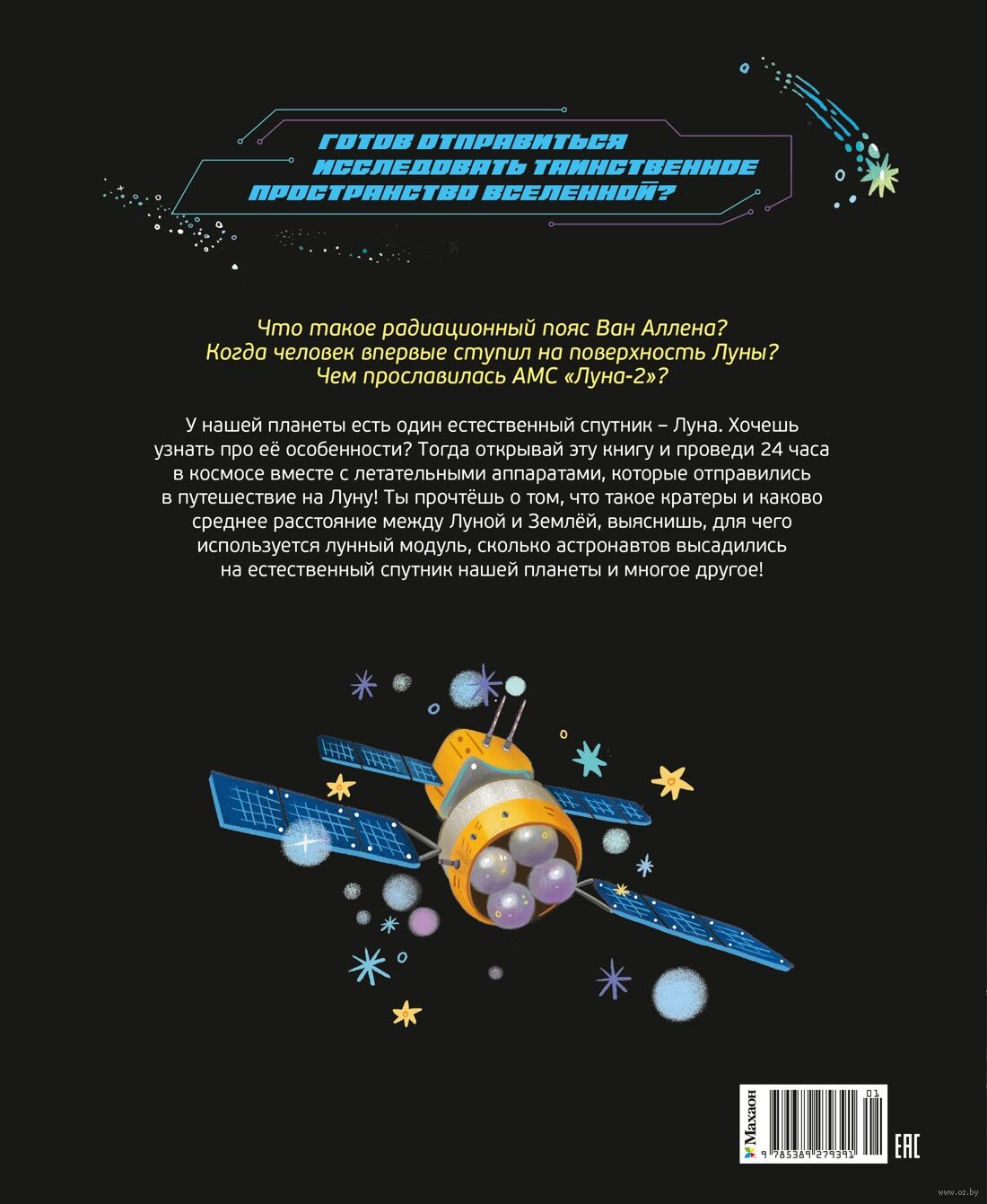 Ты прочтёшь о том, что такое кратеры и каково среднее расстояние между Луной и Землёй, выяснишь, для чего используется лунный модуль, сколько астронавтов высадились на естественный спутник нашей планеты и многое другое!
