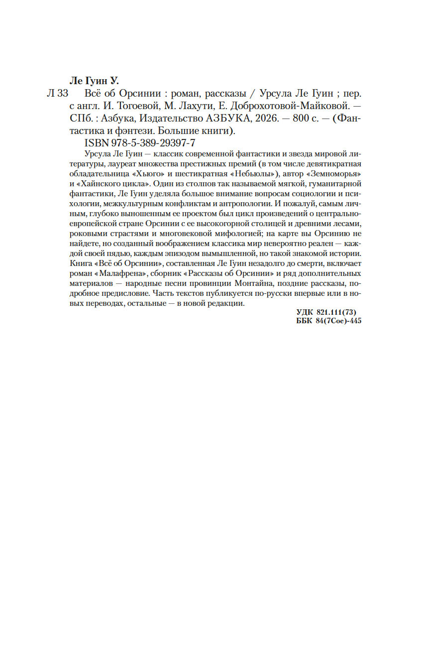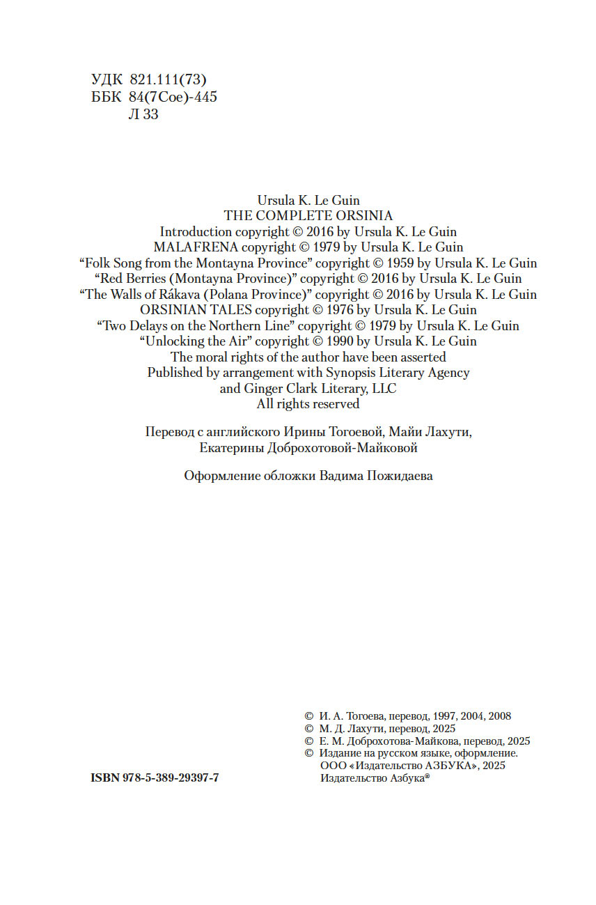 | Название в оригинале | The Complete Orsinia (LOA #281): Malafrena / Stories and Songs |