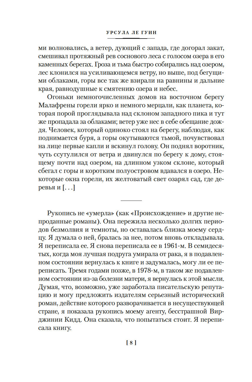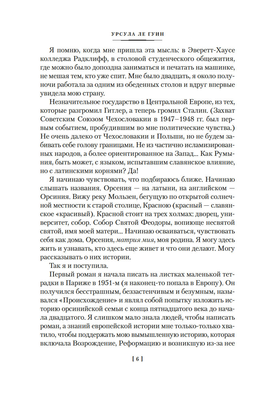 Урсула Ле Гуин – классик современной фантастики и звезда мировой литературы, лауреат множества престижных премий (в том числе девятикратная обладательница "Хьюго" и шестикратная "Небьюлы"), автор "Земноморья" и "Хайнского цикла". Один из столпов так называемой мягкой, гуманитарной фантастики, Ле Гуин уделяла большое внимание вопросам социологии и психологии, межкультурным конфликтам и антропологии. И пожалуй, самым личным, глубоко выношенным ее проектом был цикл произведений о центральноевропейской стране Орсинии с ее высокогорной столицей и древними лесами, роковыми страстями и многовековой мифологией; на карте вы Орсинию не найдете, но созданный воображением классика мир невероятно реален – каждой своей пядью, каждым эпизодом вымышленной, но такой знакомой истории.
