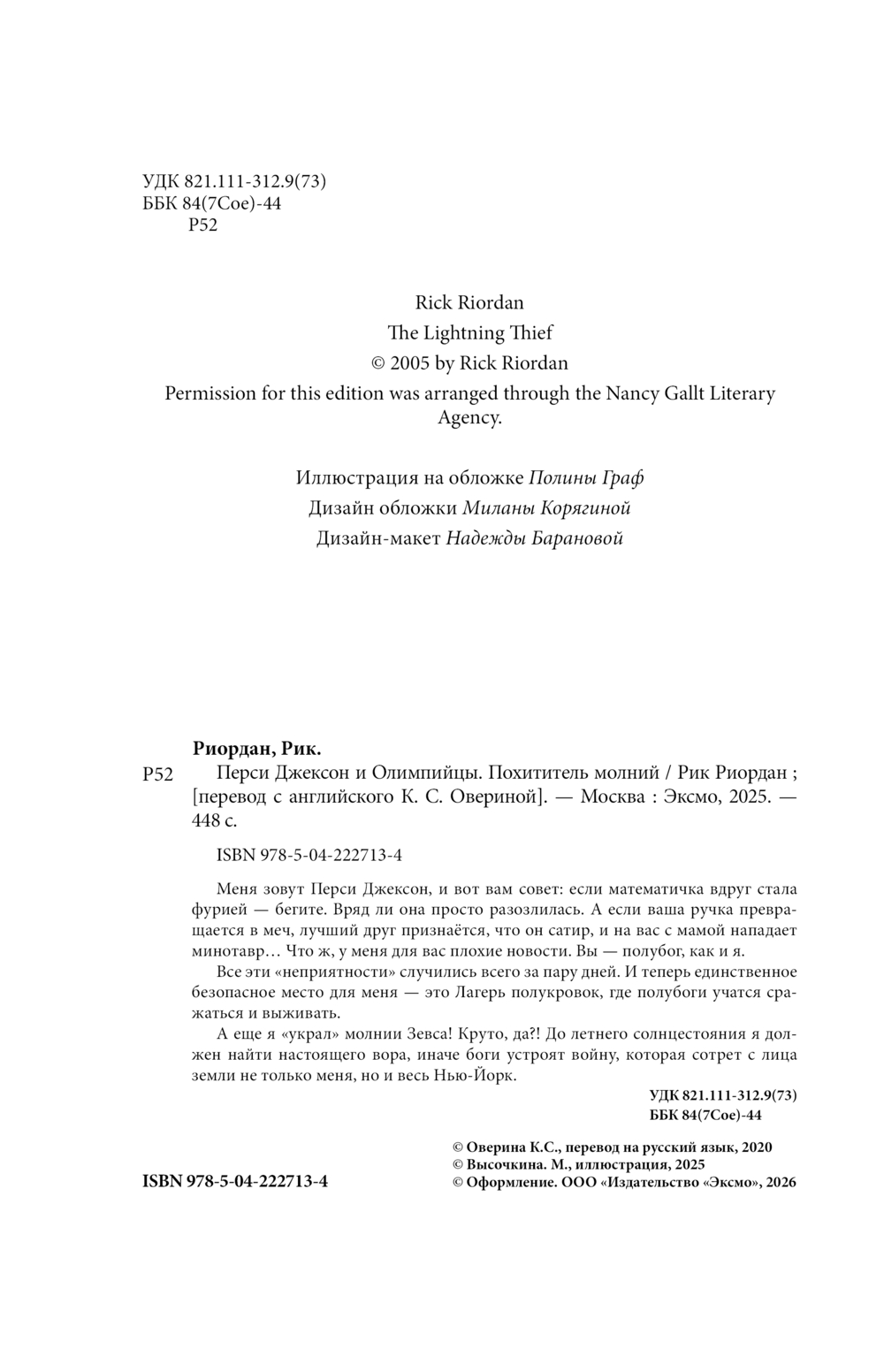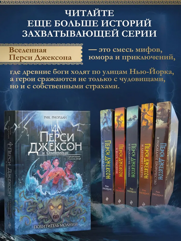 Меня зовут Перси Джексон и вот вам совет: если математичка вдруг стала фурией – бегите. Вряд ли она просто разозлилась. А если ваша ручка превращается в меч, лучший друг признается, что он сатир, и на вас с мамой нападает минотавр… Что ж, у меня для вас плохие новости. Вы – полубог, как и я.