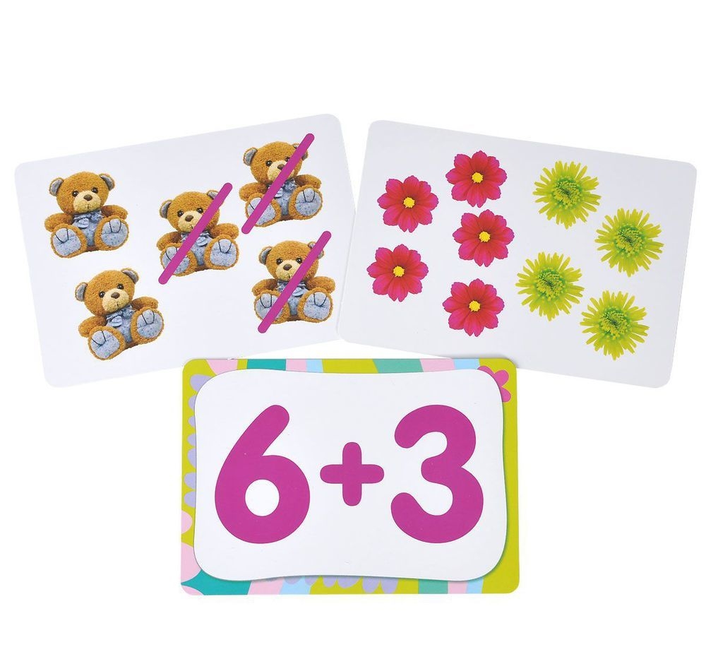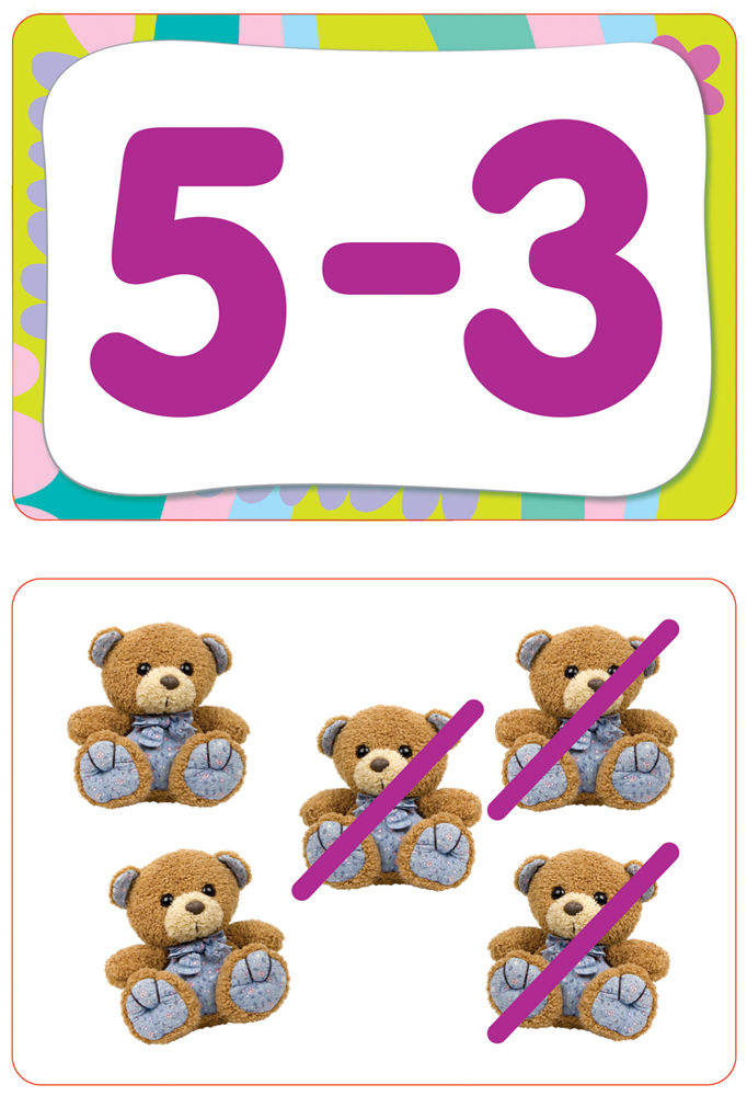 Набор развивающих карточек Учимся считать поможет вашему ребенку научиться складывать и вычитать в пределах 10. На лицевой стороне карточек представлены математические выражения, а оборотная сторона раскрывает конкретный смысл сложения и вычитания на примерах. Обучение в форме увлекательной игры наилучшим образом подходит детям старше трех лет.
