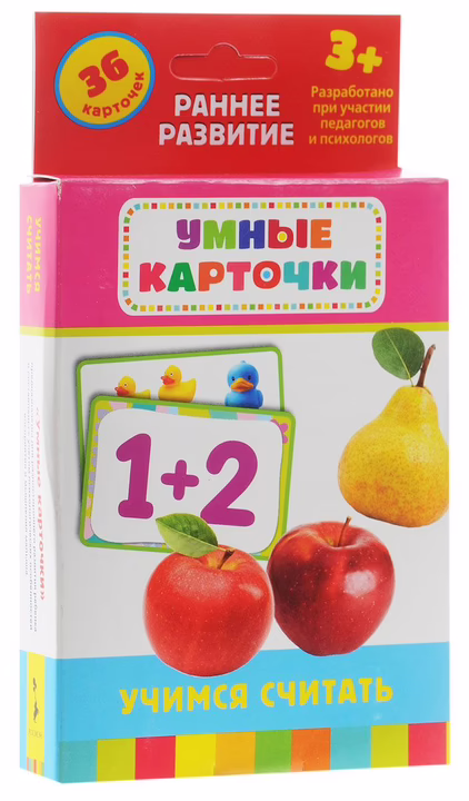 Умные карточки разработаны при участии педагогов и психологов, предназначены для групповых и индивидуальных занятий с детьми от 3 лет и состоят из 36 красочных карточек без острых углов удобного формата.