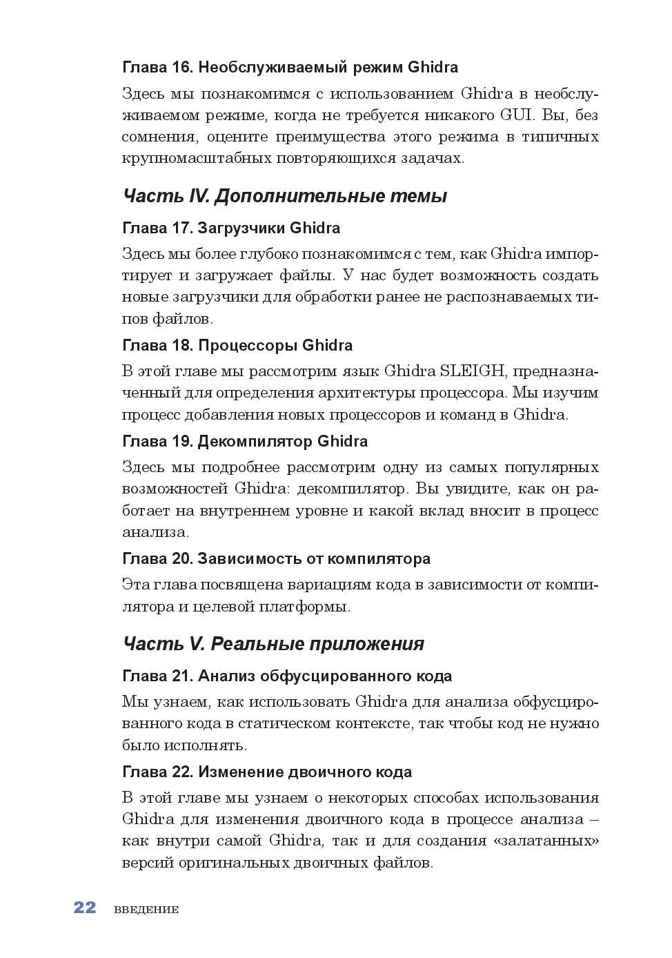 Платформа Ghidra, ставшая итогом более десяти лет работы в АНБ, была разработана для решения наиболее трудных задач обратной разработки, стоящих перед агентством. После раскрытия исходного кода этого инструмента, ранее предназначавшегося только для служебного пользования, один из лучших в мире дизассемблеров и интуитивно понятных декомпиляторов оказался в руках всех специалистов, стоящих на страже кибербезопасности, а эта книга – единственное руководство, которое поможет овладеть этим инструментом.