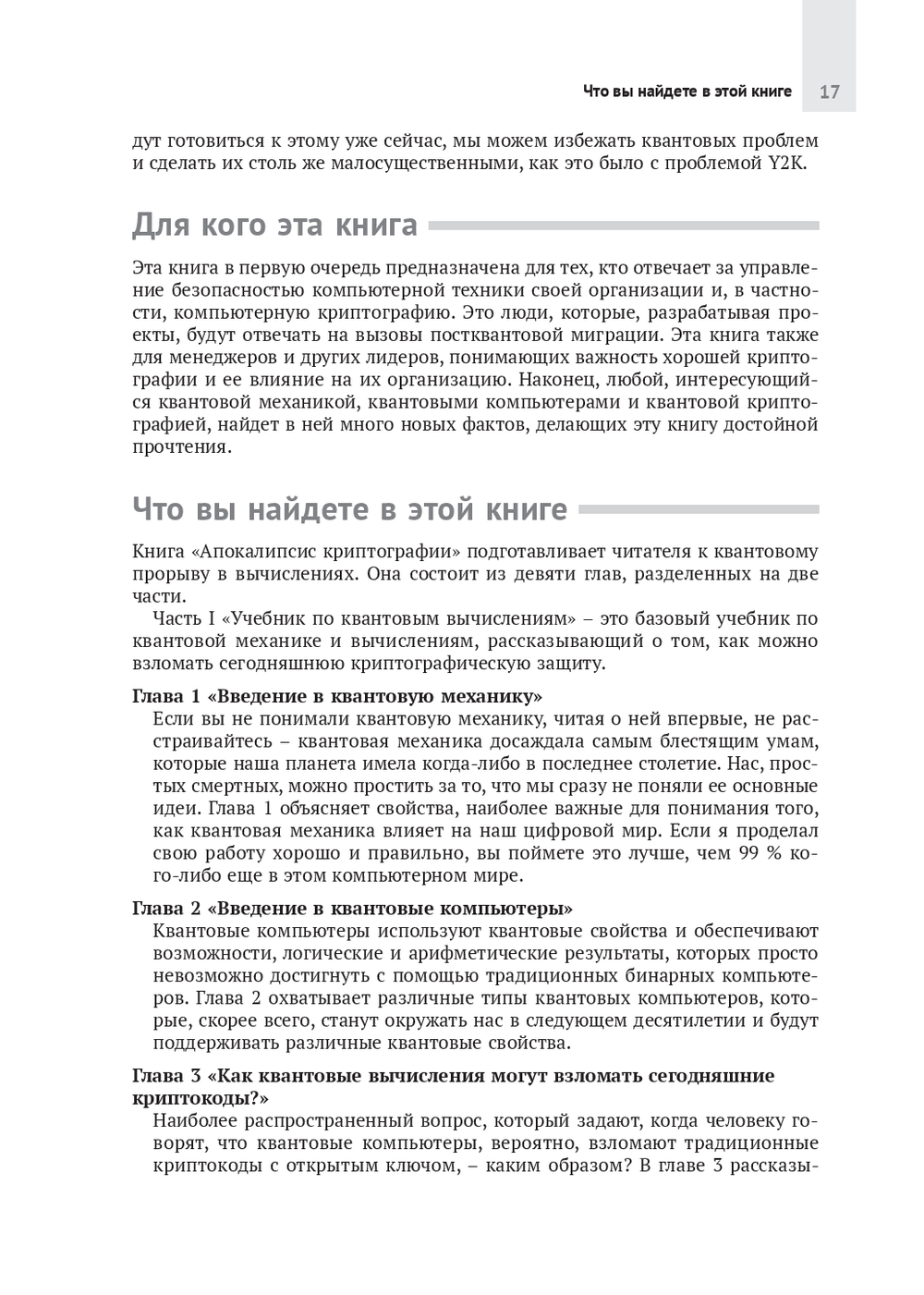 Издание адресовано работникам служб информационной безопасности, которые принимают во внимание угрозы, возникающие с появлением квантовых вычислений, и планируют защитить свои организации от взломов информационных систем.