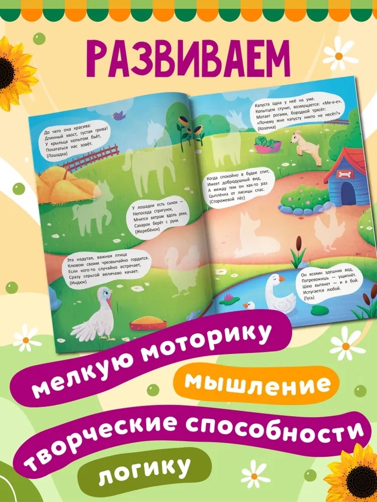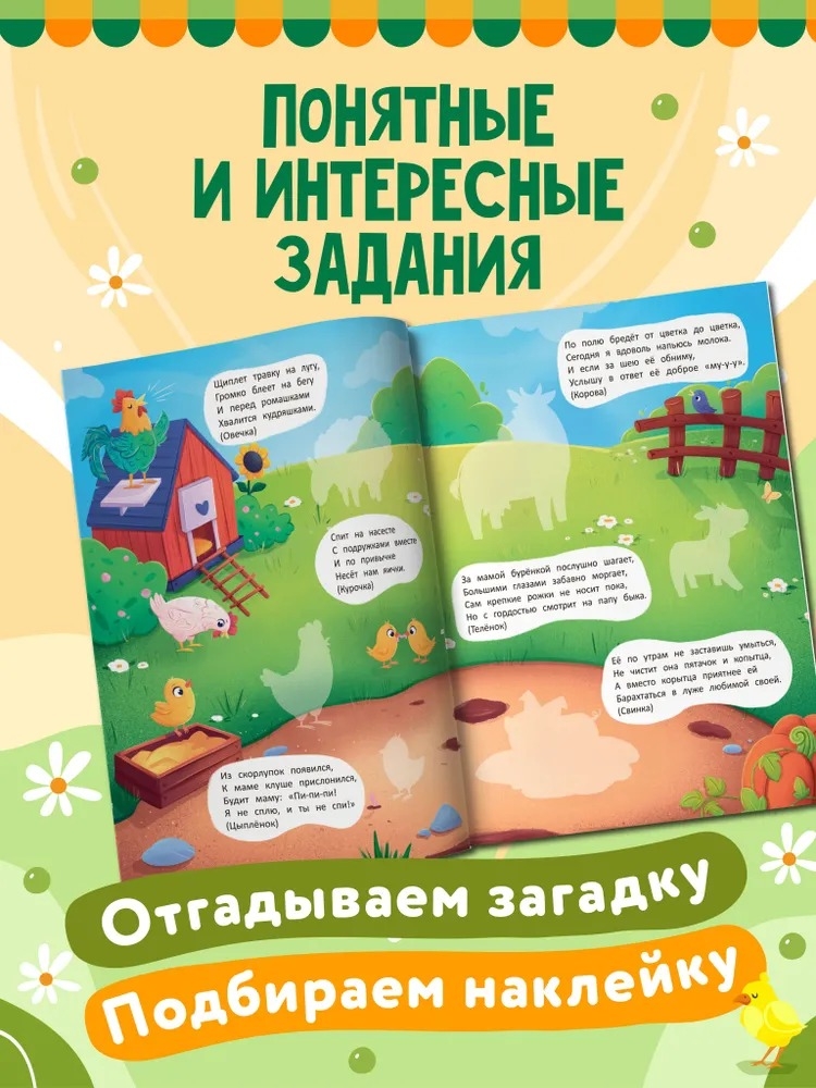 Разгадывайте загадки вместе с ребёнком, находите ответы и приклеивайте красочные наклейки. Серия книг поможет развить логику, мышление, творческие способности и мелкую моторику малыша, а также подарит радостные моменты совместного времяпрепровождения. Отправляйтесь в увлекательное путешествие по страницам книг и откройте для своего малыша мир первых весёлых приключений!