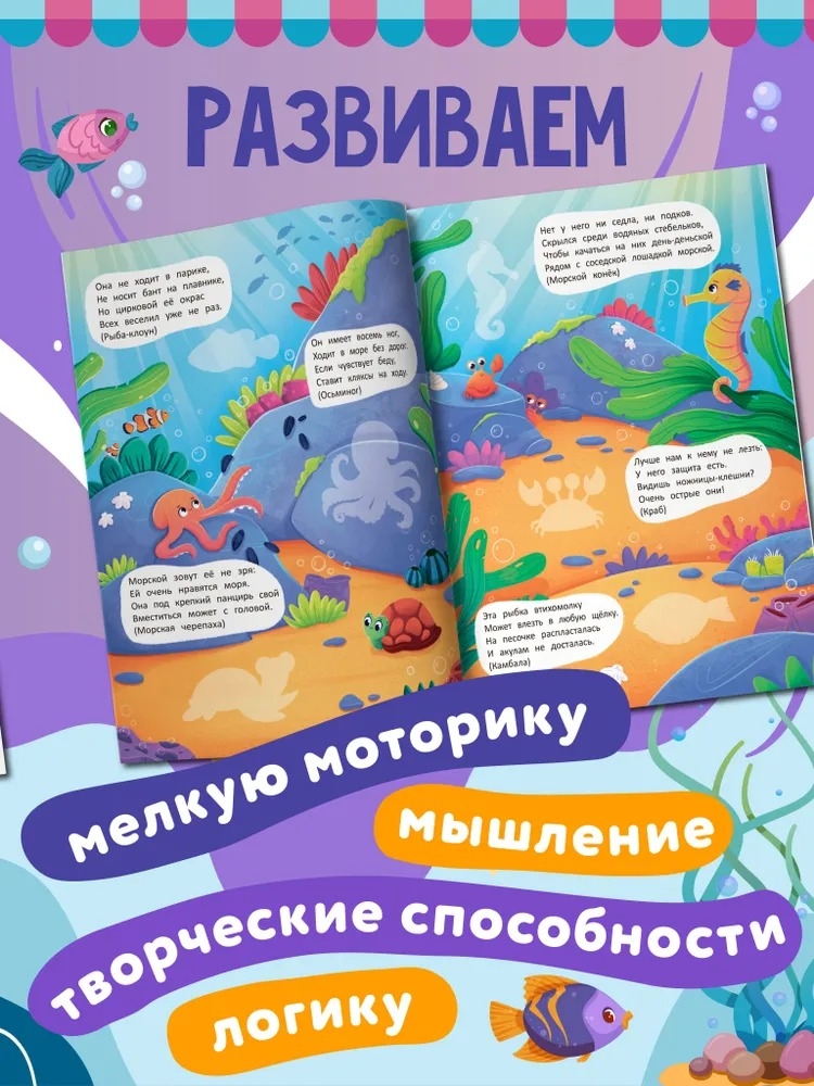 Разгадывайте загадки вместе с ребёнком, находите ответы и приклеивайте красочные наклейки. Серия книг поможет развить логику, мышление, творческие способности и мелкую моторику малыша, а также подарит радостные моменты совместного времяпрепровождения. Отправляйтесь в увлекательное путешествие по страницам книг и откройте для своего малыша мир первых весёлых приключений!