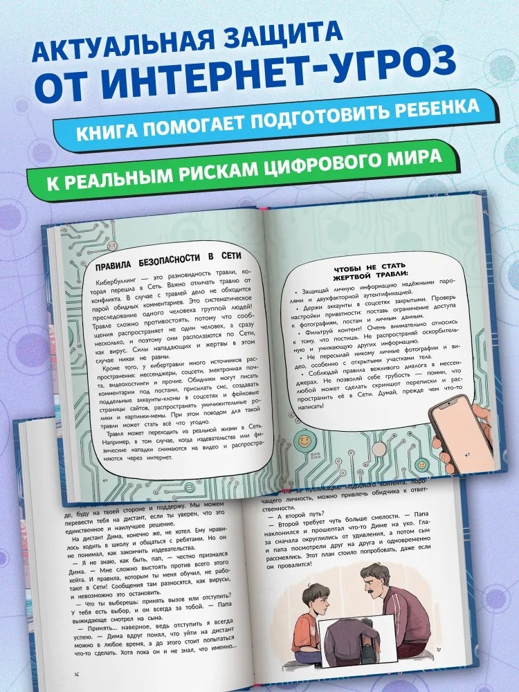 Книга подойдёт детям младшего подросткового возраста и родителям, которые хотят повысить свою киберграмотность.