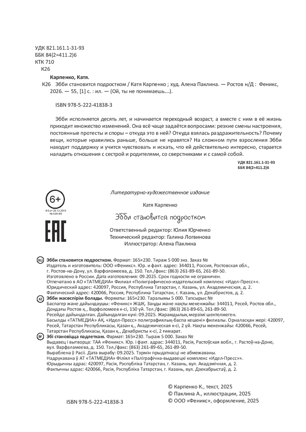 | Изготовитель | ЗАО "Издательство "Феникс". 190000, РФ, г. Санкт-Петербург, пер. Антоненко, 2 |