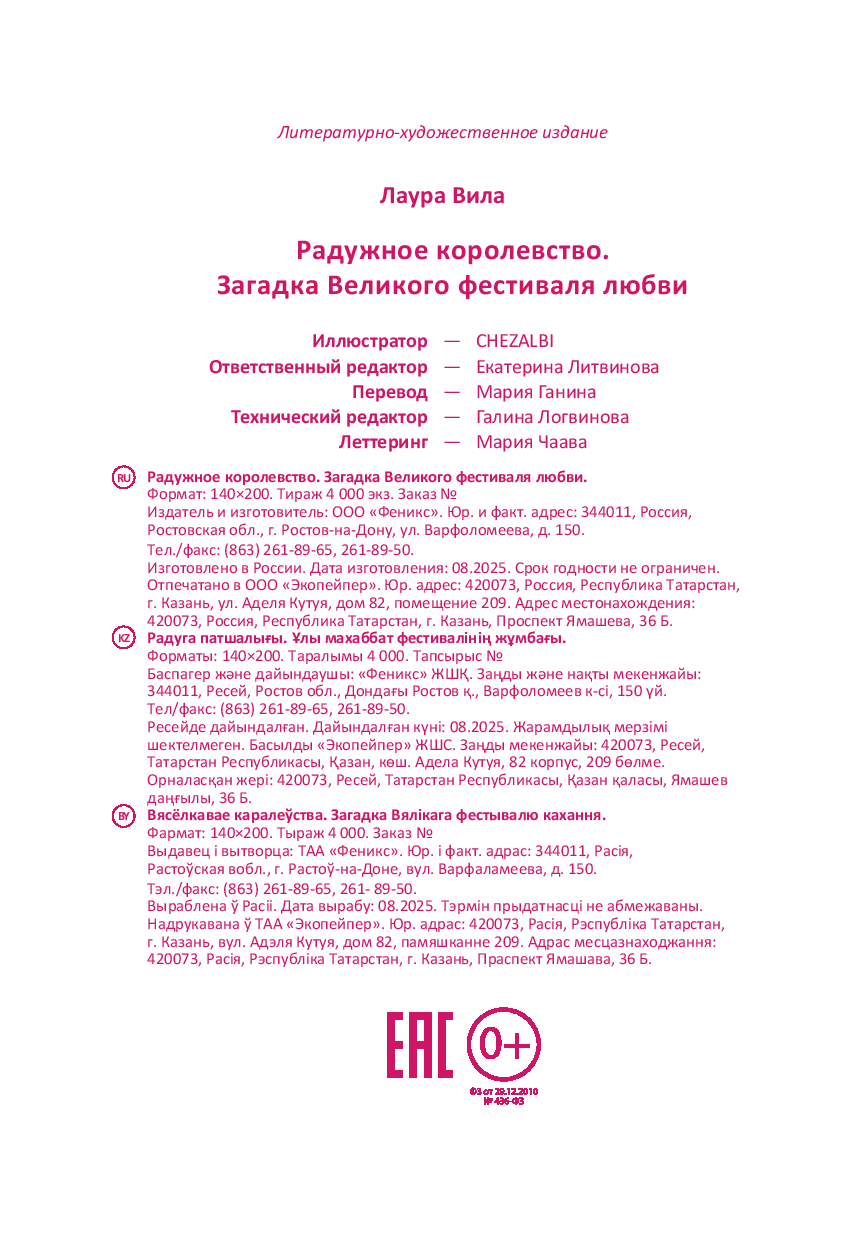 | Изготовитель | ЗАО "Издательство "Феникс". 190000, РФ, г. Санкт-Петербург, пер. Антоненко, 2 |