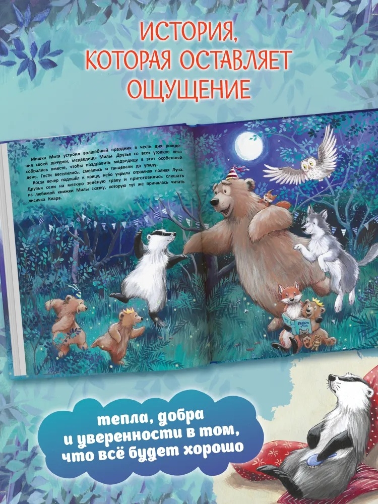 А ещё эта загадочная Луна стала свидетельницей очень важного события в жизни лесных друзей. Вы знали, что у медведицы Милы был день рождения? Кто же пришёл к ней на праздник? И почему вдруг Луна начала худеть с каждым днём? Эту тайну знает только один лесной житель... Кто же это? Откройте книжку, и ответ станет таким же ясным и светлым, как полная Луна в ночном небе!