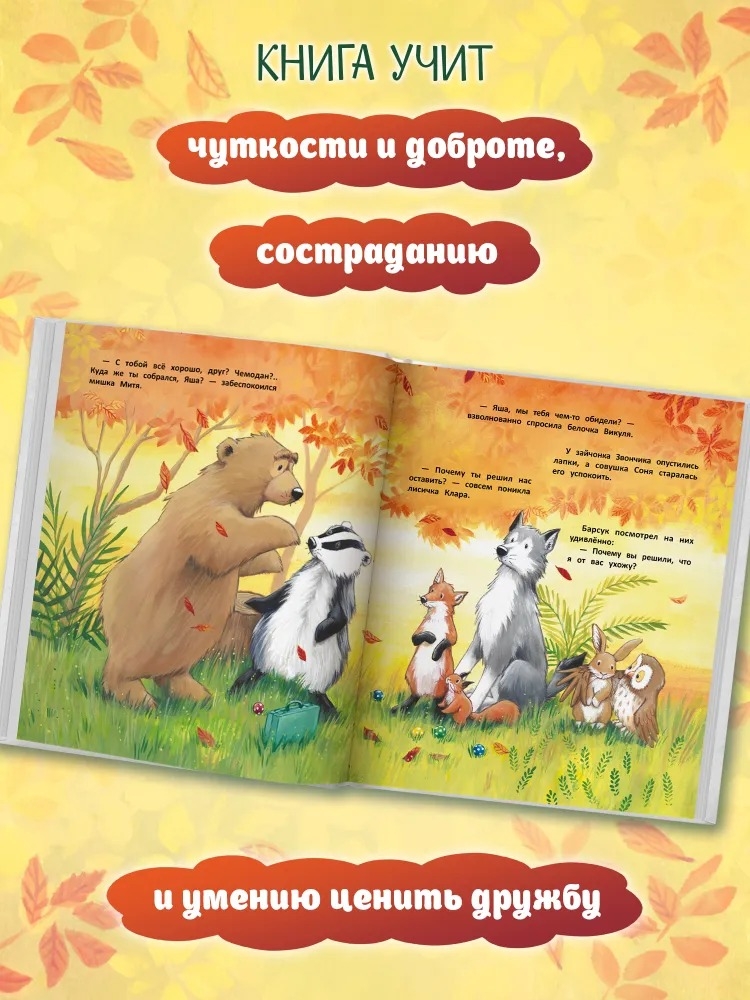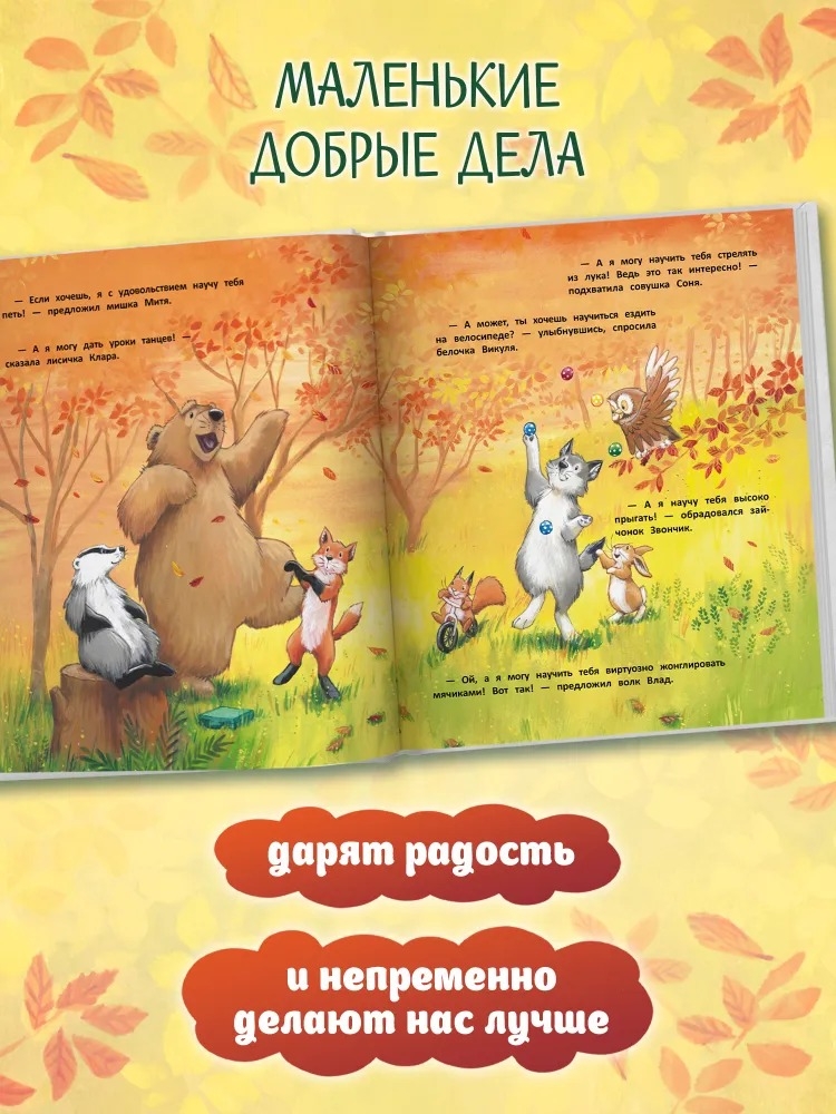 История учит помогать друг другу, ведь забота, помощь и поддержка – основа крепкой дружбы! Маленькие добрые дела, такие как улыбка или помощь, дарят радость и непременно делают нас лучше! Делитесь радостью с друзьями!