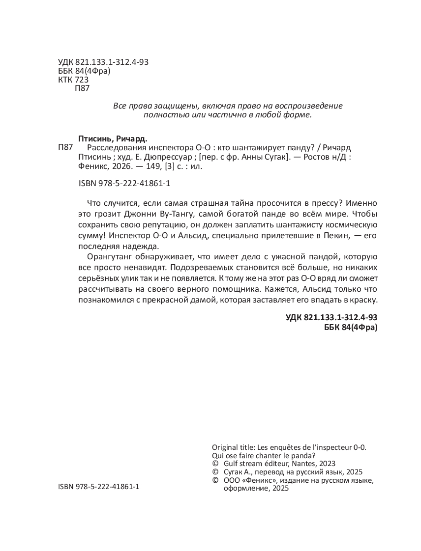 Что случится, если самая страшная тайна просочится в прессу? Именно это грозит Джонни Ву-Тангу, самой богатой панде во всём мире. Чтобы сохранить свою репутацию, он должен заплатить шантажисту космическую сумму! Инспектор О-О и Альсид, специально прилетевшие в Пекин, – его последняя надежда.