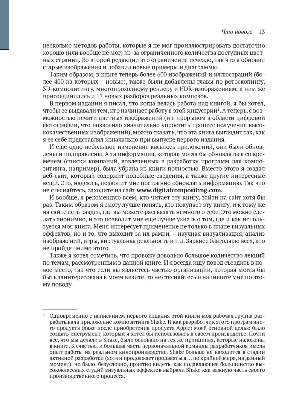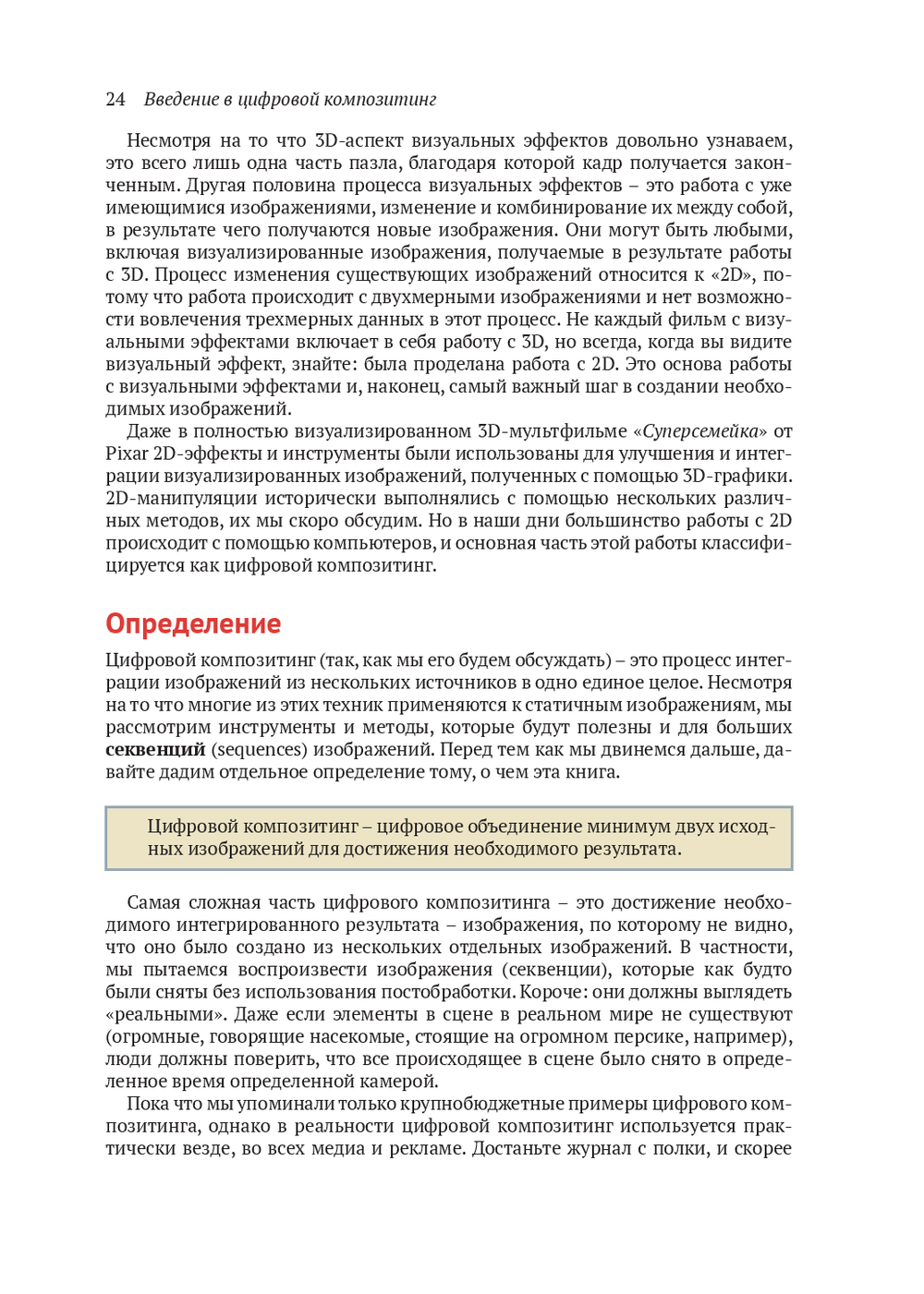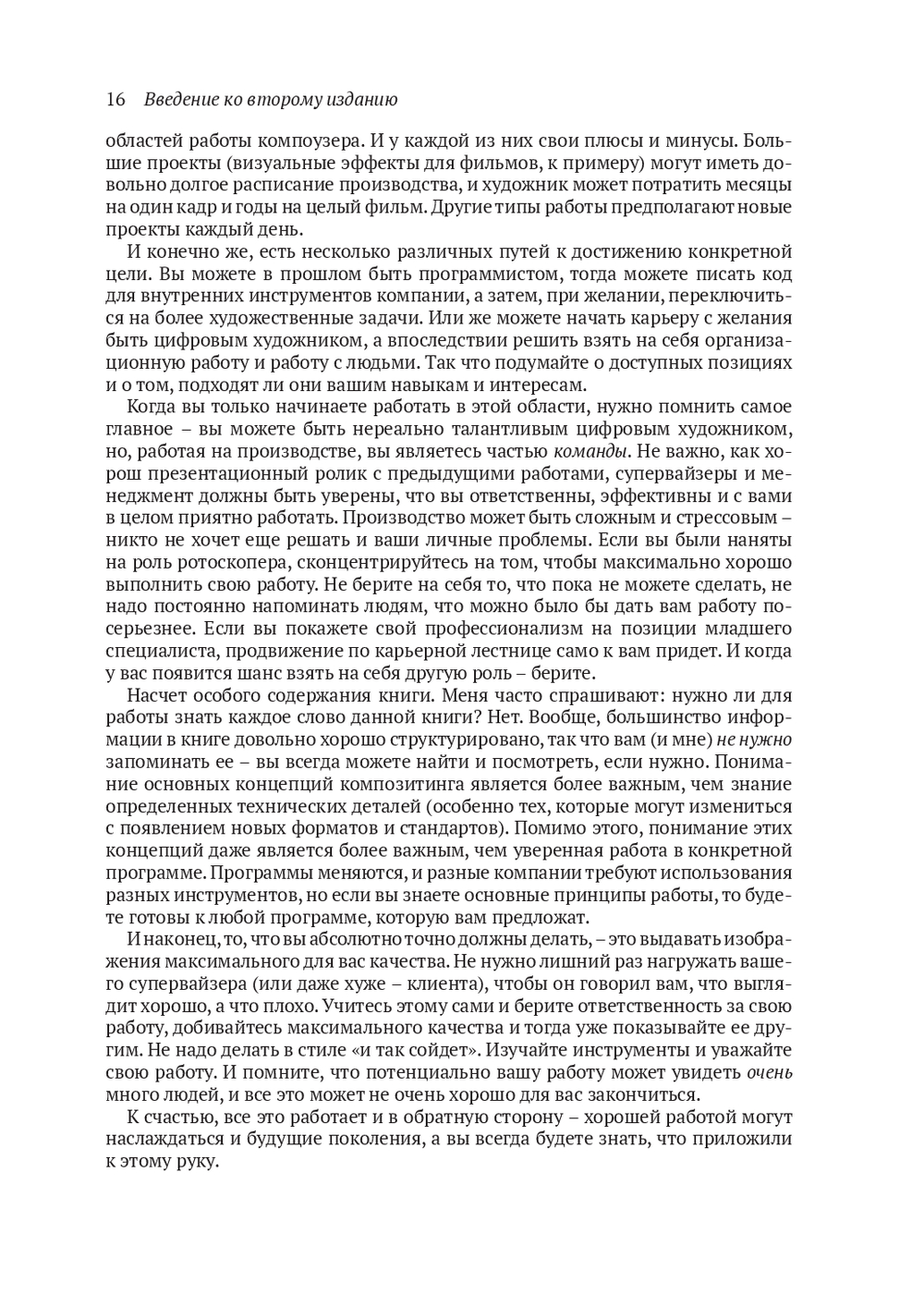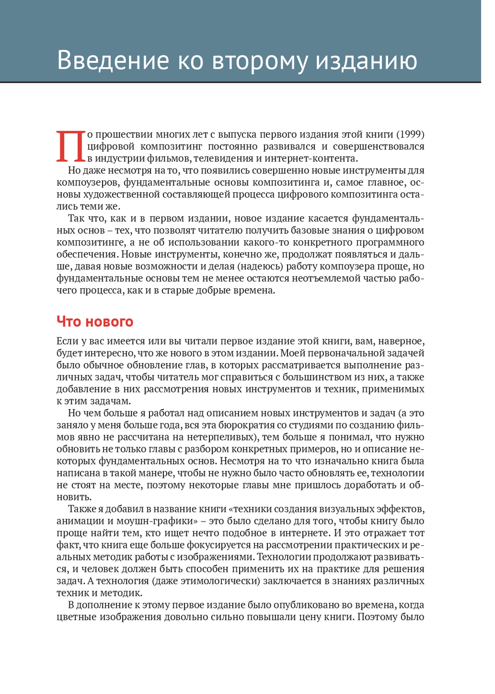 Цифровой композитинг – основа производства визуальных эффектов. Книга, которую вы держите в руках, дает исчерпывающий обзор технических и художественных аспектов этой процедуры. Издание подойдет как новичкам в качестве подробного руководства, так и профессионалам – как справочник, охватывающий широкий спектр тем.