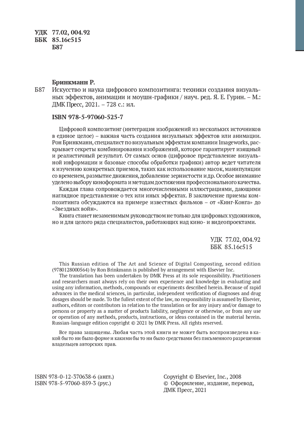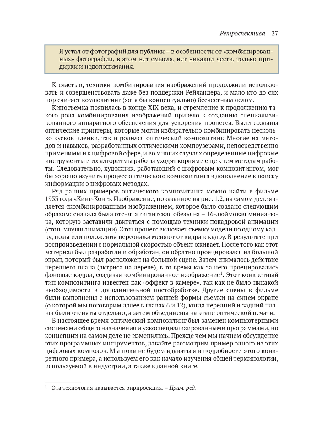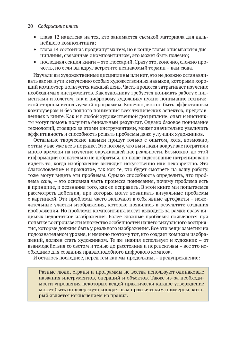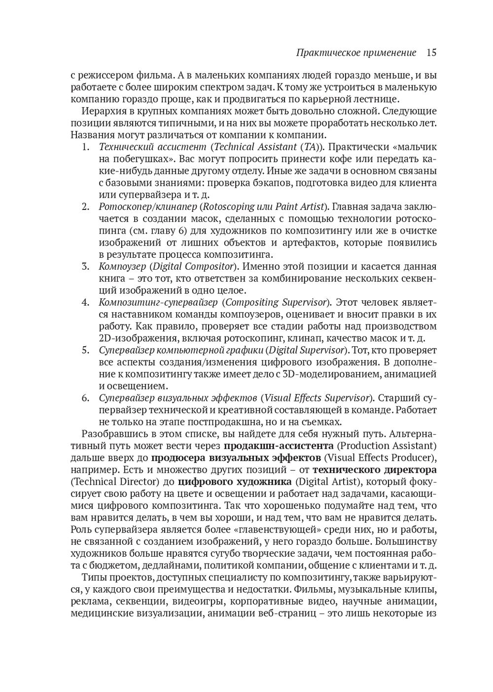 Цифровой композитинг – основа производства визуальных эффектов. Книга, которую вы держите в руках, дает исчерпывающий обзор технических и художественных аспектов этой процедуры. Издание подойдет как новичкам в качестве подробного руководства, так и профессионалам – как справочник, охватывающий широкий спектр тем.