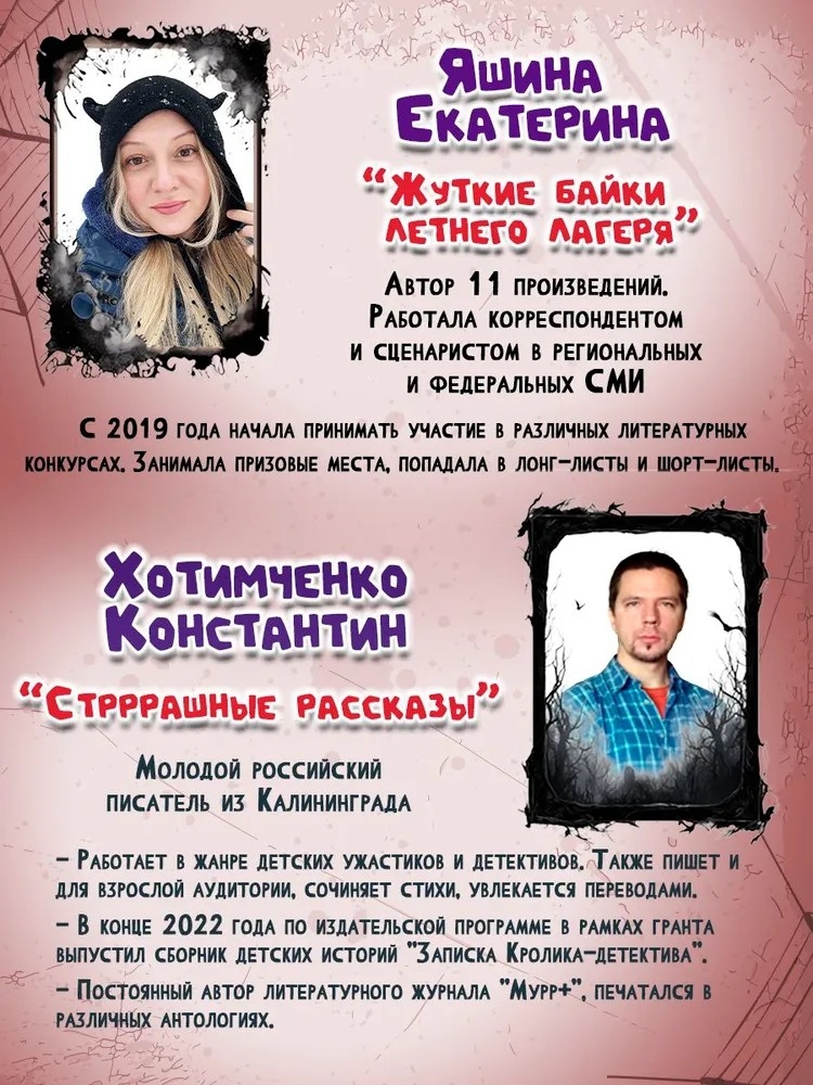В этот ужжжасный сборник вошли шокирующие и интригующие рассказы от К. Хотимченко и Е. Яшиной – современных молодёжных писателей. Сначала вы отправитесь в летний лагерь – прогулки на свежем воздухе, зарядка, вкусная еда, новые друзья… Только почему-то этот лагерь зовут жутким… А затем предлагаем вам познакомиться с говорящей куклой, мальчиком-призраком, милой вампиршей и другими интересными персонажами. Будет интересно, точно-точно!