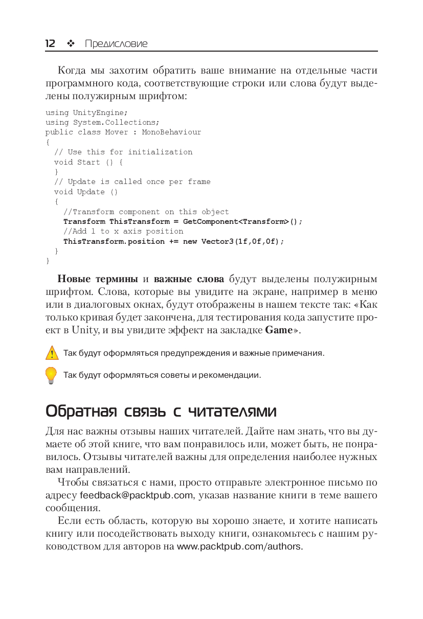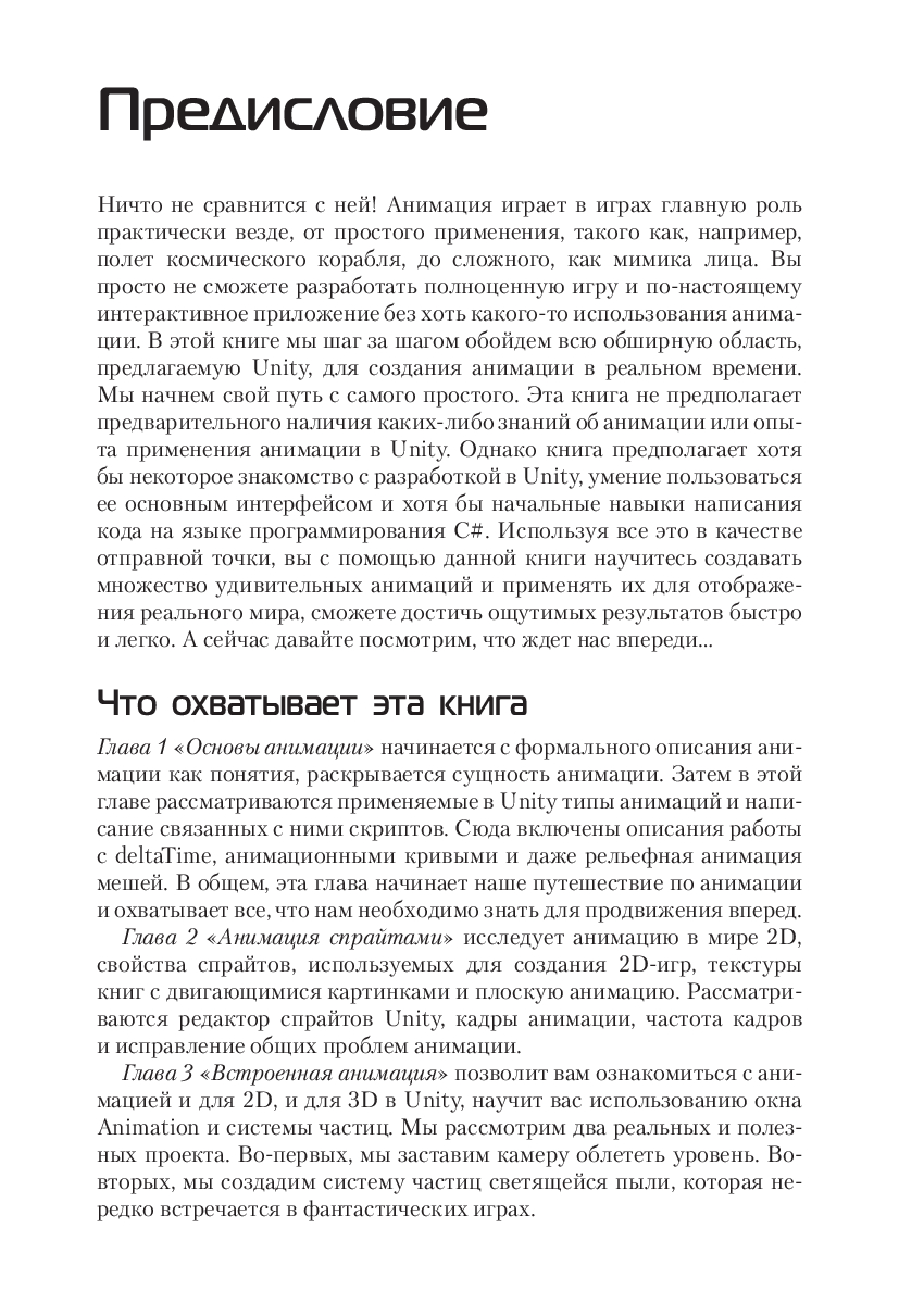 Книга "Основы анимации в Unity" содержит комплексные инструкции мощных инструментов анимации и описание способов их применения в Unity, которые могут быть использованы для создания выдающихся игр. Эта книга начинается с рассмотрения основных идей анимации, а затем переходит к примерам их практического применения для создания анимации режима реального времени в играх. В этой книге собрано множество полезных идей для создания анимаций профессионального качества и для разработки быстрых интерактивных сцен. Каждая глава посвящена одной из областей темы анимации, от установки и событий до анимации персонажей и систем частиц.