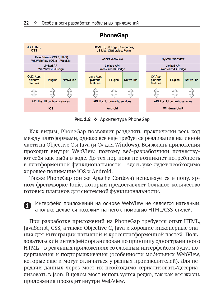 Данная книга в сжатой форме описывает целостный процесс создания приложений для смартфонов и планшетов. Рассматриваются особенности мобильных операционных систем и устройств, выбор инструментов для разработки, подготовка рабочей документации в духе Agile, проектирование структуры и архитектуры решения, создание автоматизированного конвейера Continues Integration/Continues Delivery, а также мониторинг работоспособности конечного продукта на устройствах реальных пользователей. Все примеры приведены на языке C#.
