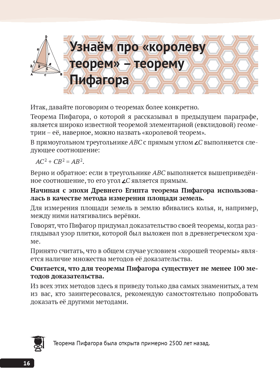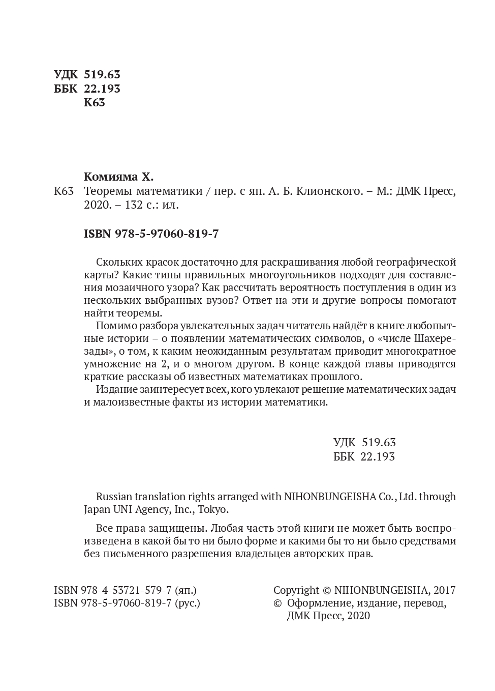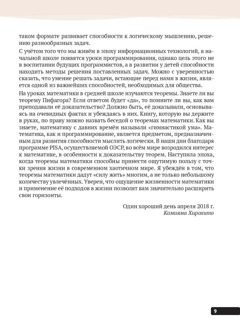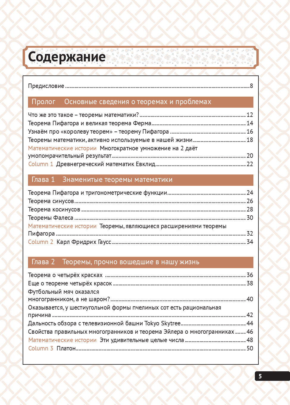 Помимо разбора увлекательных задач читатель найдёт в книге любопытные истории – о появлении математических символов, о "числе Шахерезады", о том, к каким неожиданным результатам приводит многократное умножение на 2, и о многом другом. В конце каждой главы приводятся краткие рассказы об известных математиках прошлого.