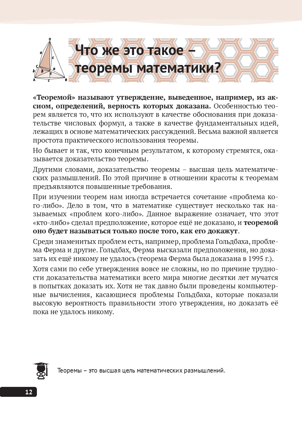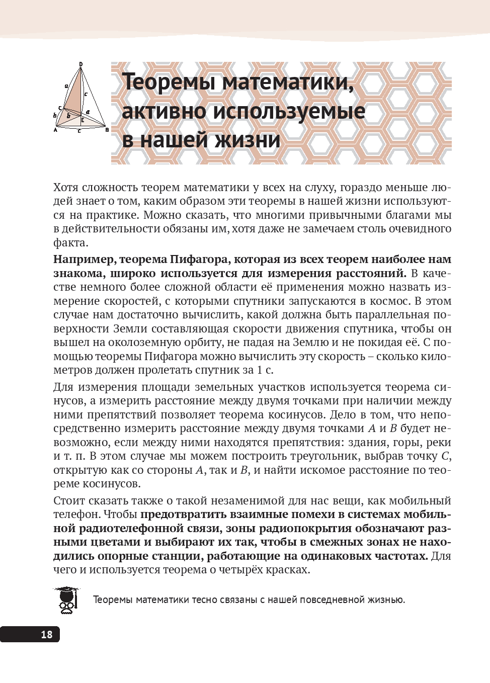Скольких красок достаточно для раскрашивания любой географической карты? Какие типы правильных многоугольников подходят для составления мозаичного узора? Как рассчитать вероятность поступления в один из нескольких выбранных вузов? Ответ на эти и другие вопросы помогают найти теоремы.