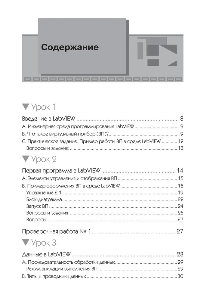 Учебник по программированию на LabVIEW написан специально для изучения этой среды в курсе школьного предмета "Информатика". Эта книга может быть рекомендована для изучения темы "Алгоритмизация и объектно-ориентированное программирование" учащимся 6-9 классов общего образования в школе в рамках Федерального государственного образовательного стандарта. Книга может быть использована для работы в общеобразовательных классах и классах естественно-математического и информационно-технологического профиля. Содержание книги поясняется рисунками, примерами и упражнениями. Предложены проверочные работы по трем темам. Материал пособия был апробирован в 6 классе. Рекомендуется затрачивать по 2 часа на прохождение каждого из уроков. Проверочные работы рассчитаны каждая на 1 урок. После каждой проверочной работы желательно проводить работу над ошибками с обсуждением ответов на вопросы. Ориентировочно курс рассчитан на 28 часов.