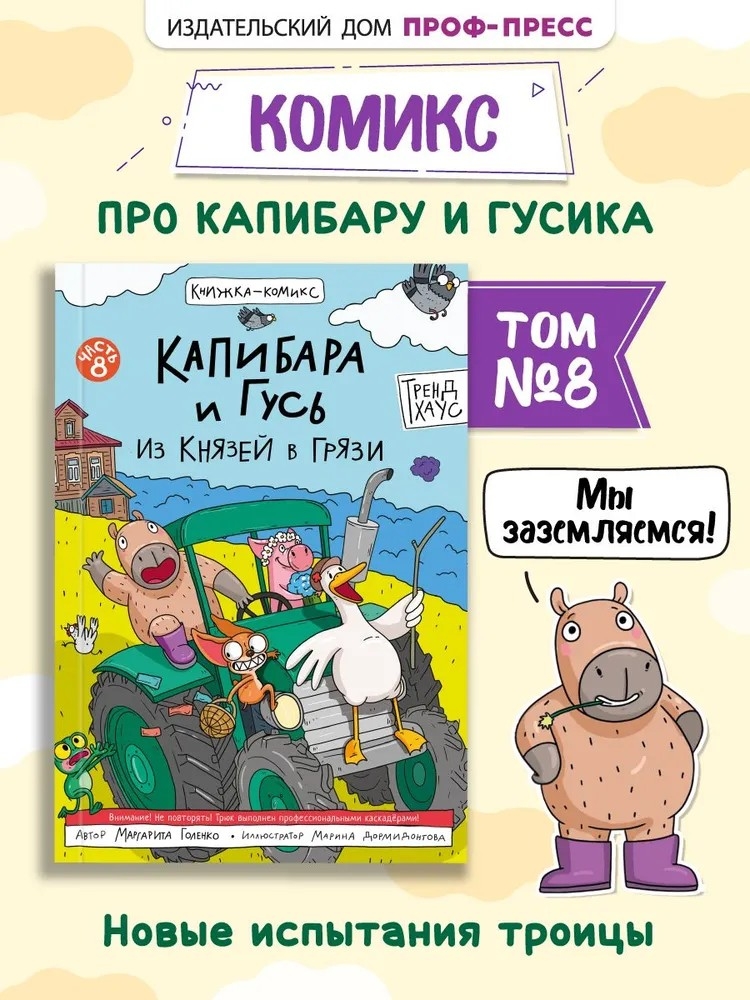 Капибара, Гусь и Чихуашка внезапно оказываются вдали от привычного города – в глубине сельской местности, где жизнь идёт по своим неспешным правилам. 8-я часть серии "Из князей в грязи" рассказывает о главных героях, которые стараются найти общий язык с местными жителями, привыкшими к размеренной бытовой рутине. Смогут ли они преодолеть недоверие и завоевать доверие местных жителей? Узнайте в этом трогательном и забавном томе о настоящей дружбе и приключениях на новом месте.